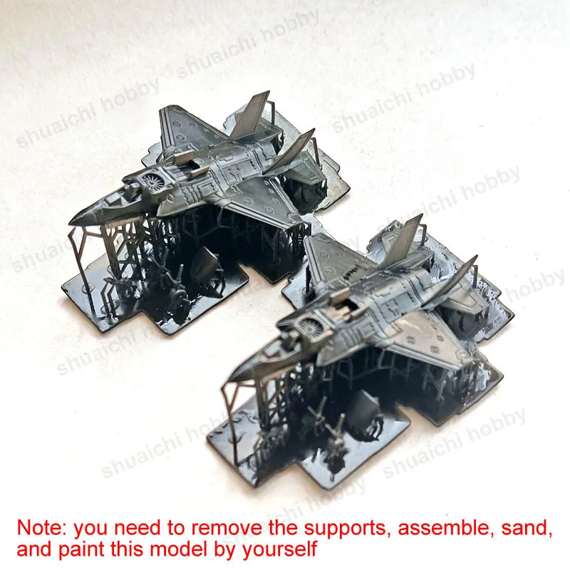 Immerse yourself in the world of modern aviation with these meticulously crafted 1/350 scale resin models of the F-35B stealth fighter. Designed for display and collection, each model captures the sleek, angular design and aggressive stance characteristic of the real aircraft. Featuring sharp, clean lines and smooth surfaces, these models boast broad, sharply swept-back wings and upright vertical stabilizers with subtly angled tops. The photos highlight their matte dark gray finish combined with lighter shades, emphasizing their stealthy, high-tech aesthetic. The open canopies reveal dark cockpit interiors, adding depth and realism. While assembled from 3D printed parts, these models invite you to add your personal touch through sanding, painting, and customizing to enhance their authentic appearance. Perfect for enthusiasts who value technical precision and visual impact.