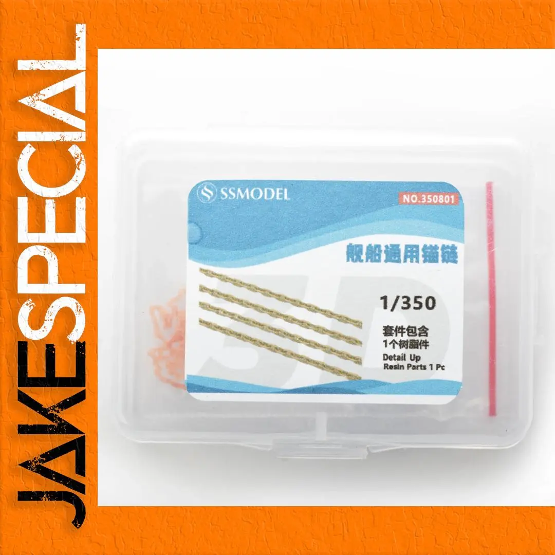 This 1/350 scale anchor chain is an essential resin part designed explicitly for warship models. Featuring intricate detailing and a realistic gold or brass color, the chain exhibits a twisted texture typical of maritime applications. The product consists of a single high-quality resin component that adds authenticity and sophistication to your naval dioramas or model collections. The overall design showcases a sleek and professional aesthetic, making it a must-have for mature collectors. The model number 350801 ensures easy identification and compatibility with various warship kits. Crafted with precision, this anchor chain contributes to an impressive visual display and is ideal for those aged 14 and above.