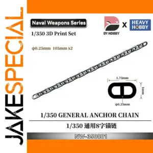 - Heavy Hobby’s 1/350 scale plastic anchor chain features interconnected detailed links, each approximately 1.75mm long and 0.25mm wide, designed for realism and durability in military modeling projects.
