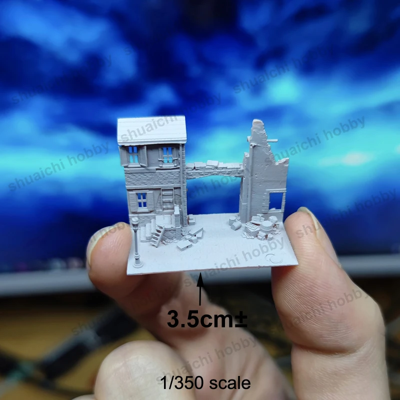 - Available in five variants: white, sand color no scene, gray no scene, destroyed scene, and ruins house scene, matching different display interests.