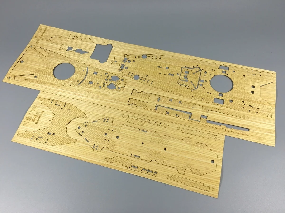 Experience the satisfaction of enhancing your model with this detailed miniature wooden deck designed specifically for the US battleship BB-63 Missouri. Crafted from high-quality bamboo, it features a natural light hue that highlights the authentic wood grain texture, giving your model a realistic and refined appearance. The surface is intricately detailed with fine, simulated planking lines that run lengthwise, creating an impression of genuine wooden planks. Some parts include molded gray plastic or resin components, offering structural details, deck fittings, and equipment accents that blend seamlessly with the wooden texture. This set is perfect for hobbyists aiming to add a touch of realism and craftsmanship to their 1/350 scale Missouri model.