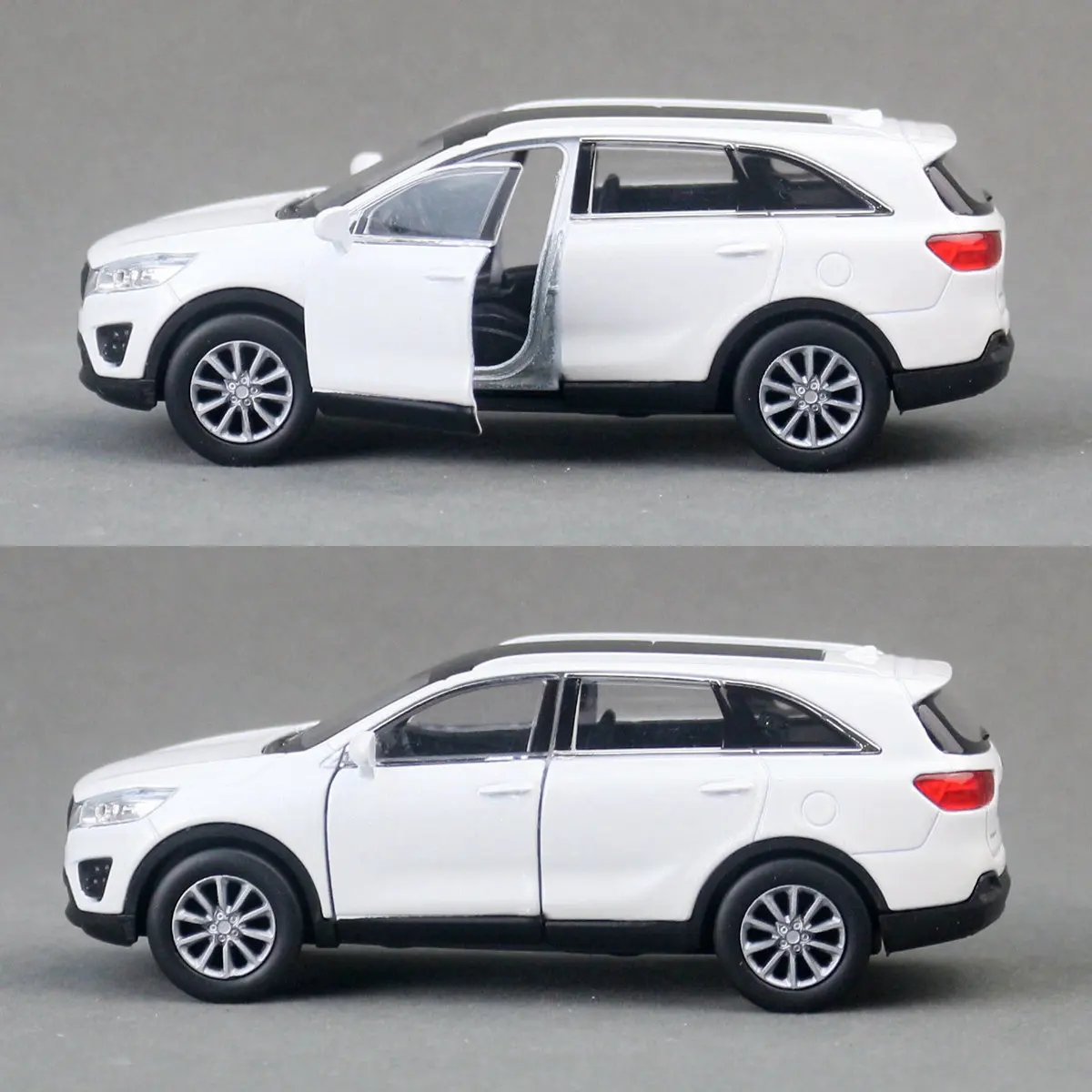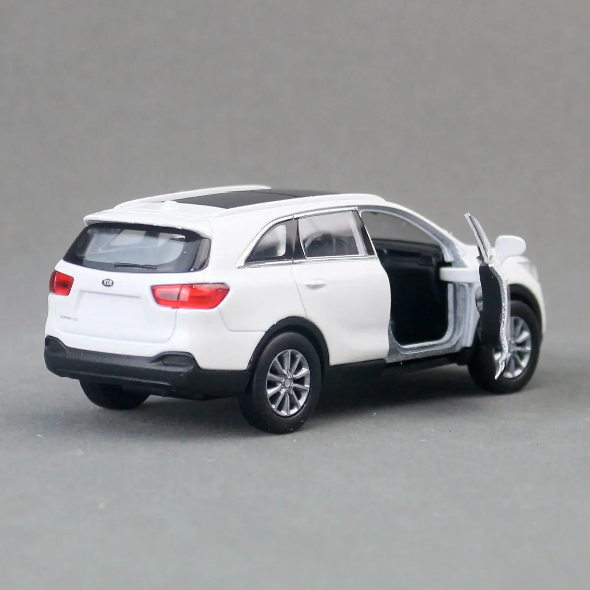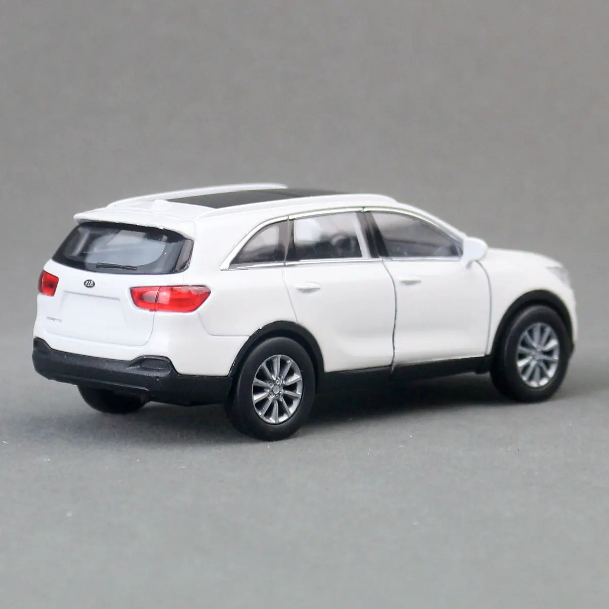 Experience the realistic charm of this 1/36 scale diecast Kia Sorento SUV in classic white, crafted from durable metal for collectors and enthusiasts. Measuring approximately 11-12 centimeters, this detailed model features free-rolling wheels, textured multi-spoke rims, and a precisely molded exterior with a textured front grille, smooth hood contours, and aerodynamic side mirrors. The model includes transparent, black-tinted windows and a black roof rack, capturing the full-sized vehicle’s stylish design. Designed for ages 14 and up, it is perfect for collection or as a gift, offering a high-quality miniature replica with meticulous detailing and a contemporary aesthetic.