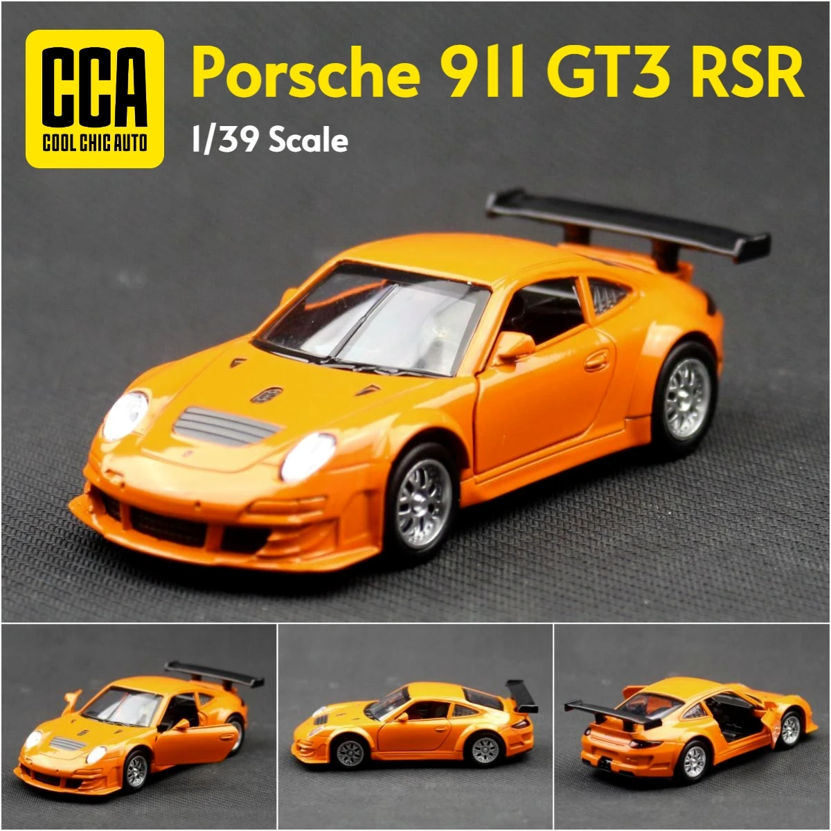 - This 1/39 scale diecast model depicts the iconic Porsche 911 GT3 RSR with authentic racing details, available in vibrant orange and sleek black colors for a striking display. It’s crafted from sturdy metal for durability.
