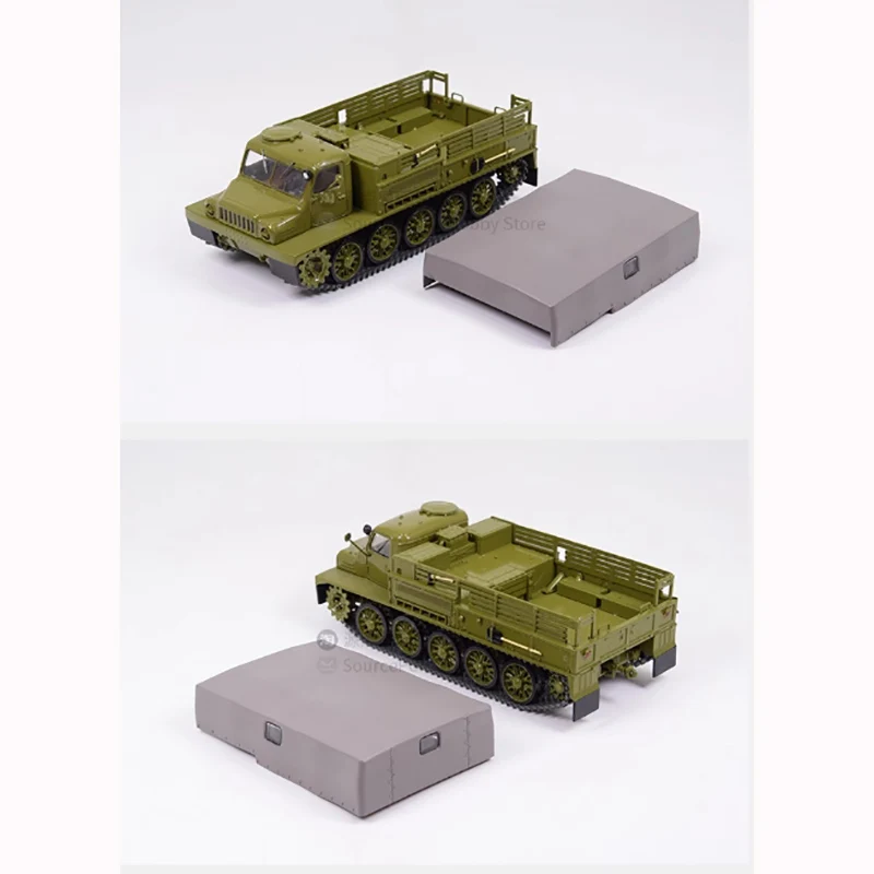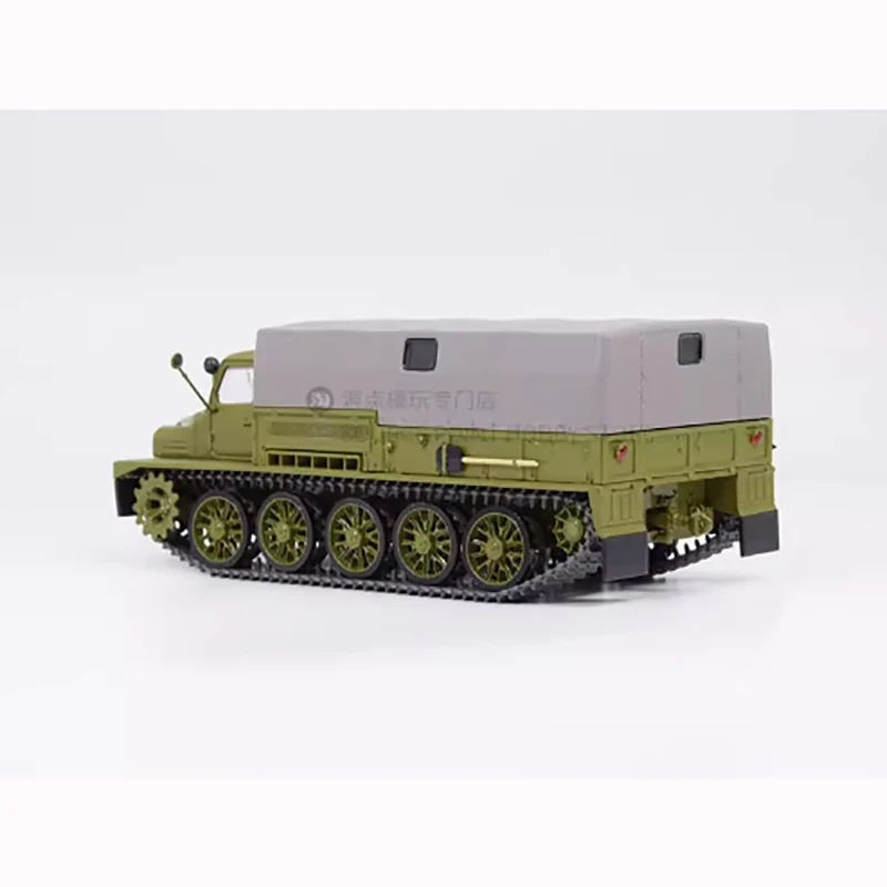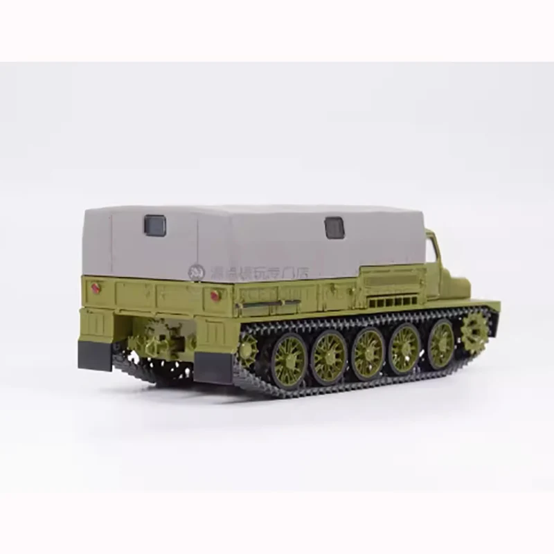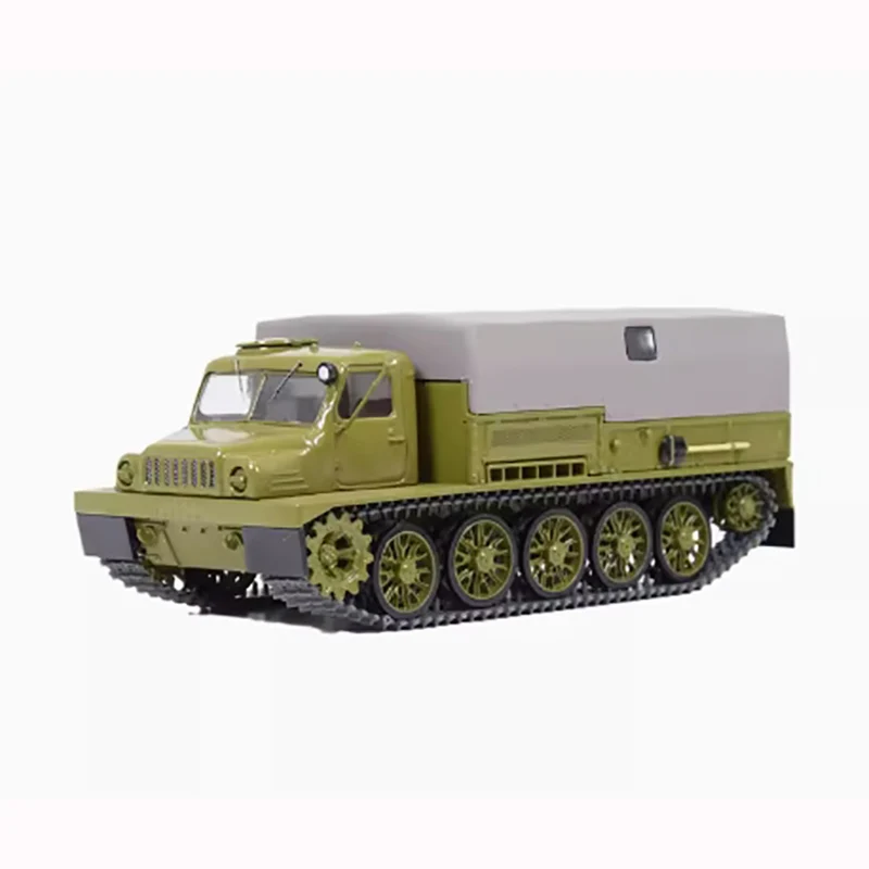 Experience the rugged charm of this detailed miniature, perfect for collectors and enthusiasts. Crafted with high-quality alloys and plastics, this model captures the tough, military-inspired design of the ATS-59 tractor. Its matte olive green finish emphasizes durability and authenticity. The cab features a rounded shape with clear plastic windows revealing a simplified interior, adding to the authenticity. The sculpted hood with engine vents and grille details further enhances its realistic look. Large textured tracks wrap around detailed road wheels and sprockets, giving an industrial appearance that reflects the tractor's robustness. With a sizable gray canopy on the rear, this model combines practicality with striking aesthetic appeal. Ideal for displays, gifts, or space decoration, it’s a must-have for serious collectors.