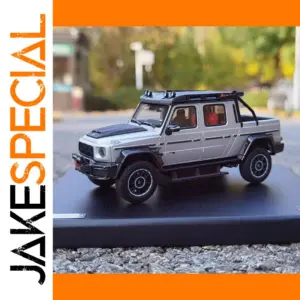 This 1:43 scale die-cast alloy collectible model captures the rugged elegance of the Brabus G800 Adventure XLP pickup truck, finished in striking metallic silver or light gray with contrasting black accents. Featuring precise details such as a Mercedes-Benz mesh grille, round clear lenses headlights, black fender flares, and a hood with a vent or scoop, it exudes off-road capability and sophistication. The open pickup bed, equipped with a black roll bar, roof rack, and accessories, complements its adventurous design. Crafted for collectors aged 14 and older, this high-quality finished model combines durability with realistic aesthetics, making it a perfect display piece for enthusiasts seeking both style and craftsmanship.