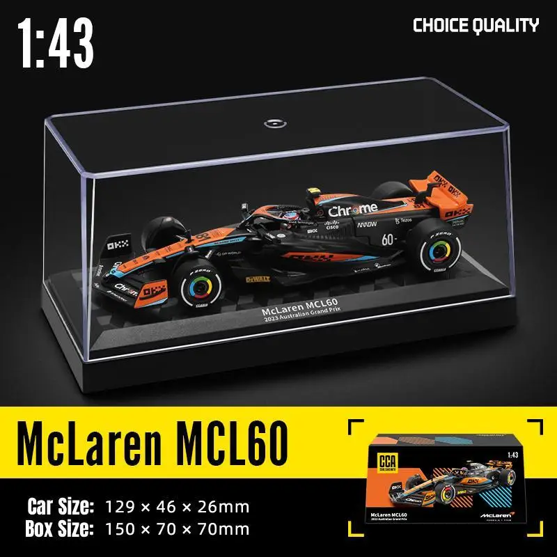 Elevate your collection with this stunning 1/43 scale McLaren MCL60 F1 diecast model. Crafted with precision metal and designed to display the sleek lines of the iconic racing car, this miniature captures the essence of Formula 1 performance. Perfect for display or as a gift for F1 enthusiasts, it’s a must-have for collectors seeking authenticity and detail. Imagine proudly showcasing this model on your shelf, instantly adding a touch of motorsport excitement to your space. Its lightweight, durable metal construction ensures long-lasting admiration. Whether you're an avid collector or a passionate fan, this high-quality diecast vehicle is an excellent choice to enhance your collection or enjoy as a treasured item. Experience the thrill of the race in miniature form today.