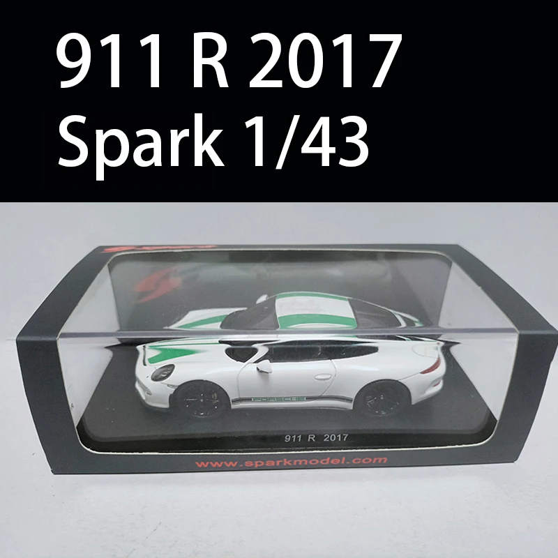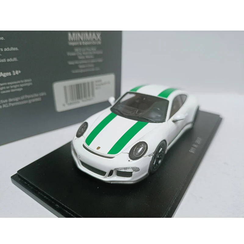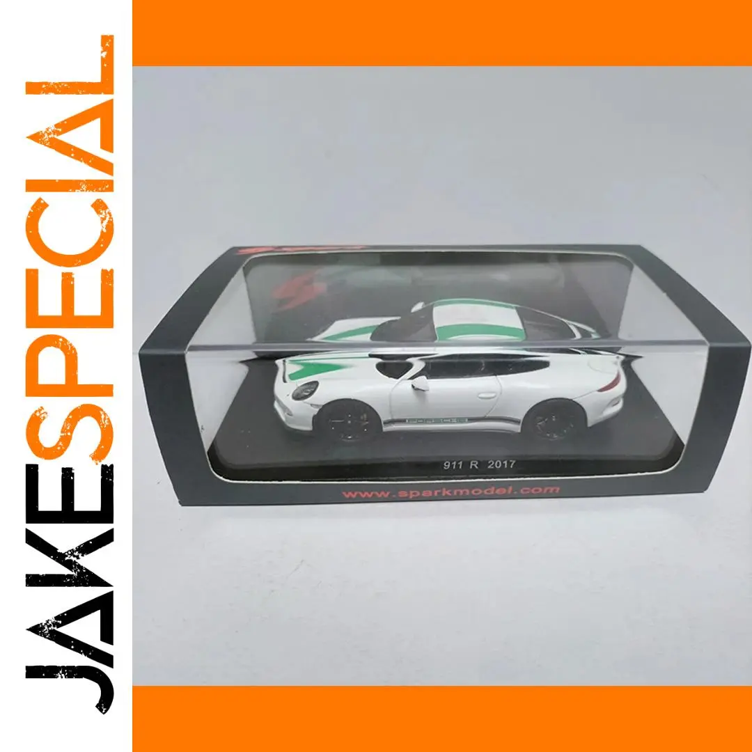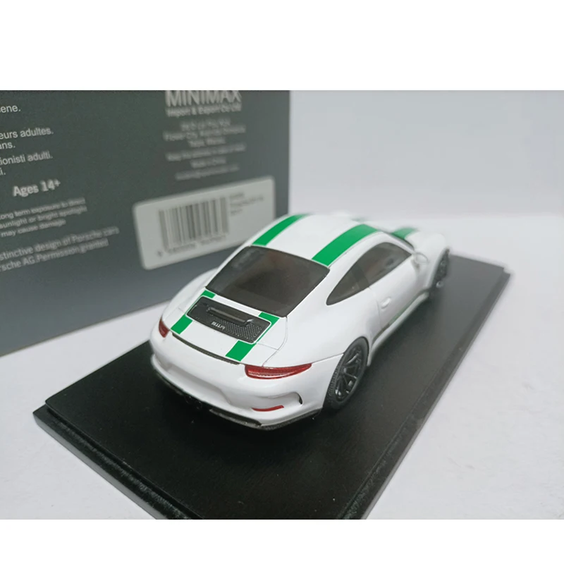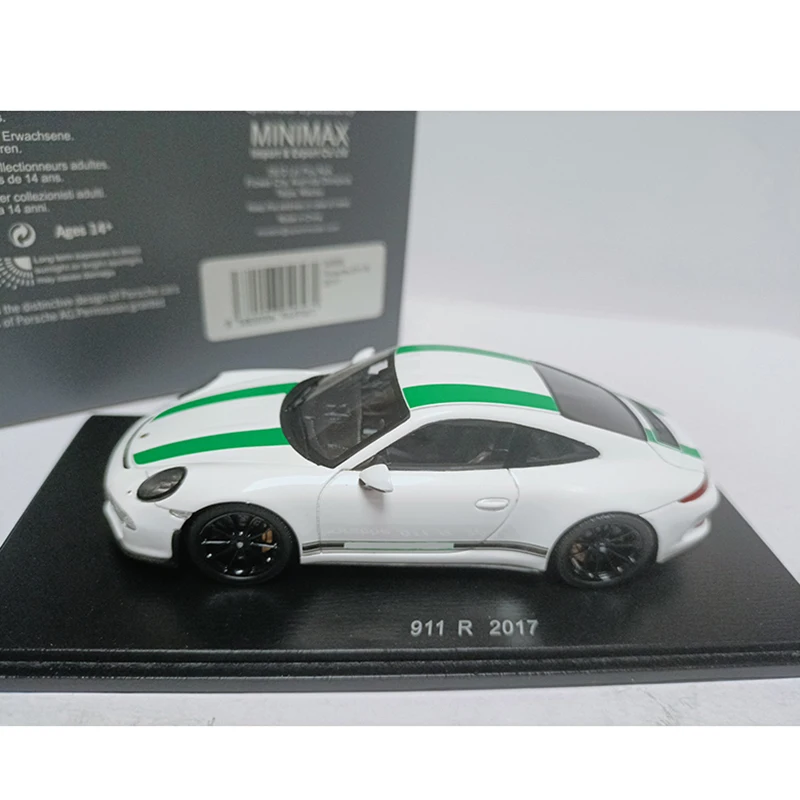 This 1/43 scale diecast resin model of the Porsche 911 R 2017 captures the sleek, aerodynamic design of the original, finished in a glossy white finish with distinctive green racing stripes over the roof and trunk, and small green accents on the sides. Featuring black wheels, tinted windows, and detailed side mirrors, this collectible sculpture offers a realistic and refined appearance, making it ideal for display or gifting. Crafted from high-quality resin, it is a static decorative piece designed for collectors aged 14 and older, emphasizing craftsmanship and attention to detail without any electrical components or batteries.