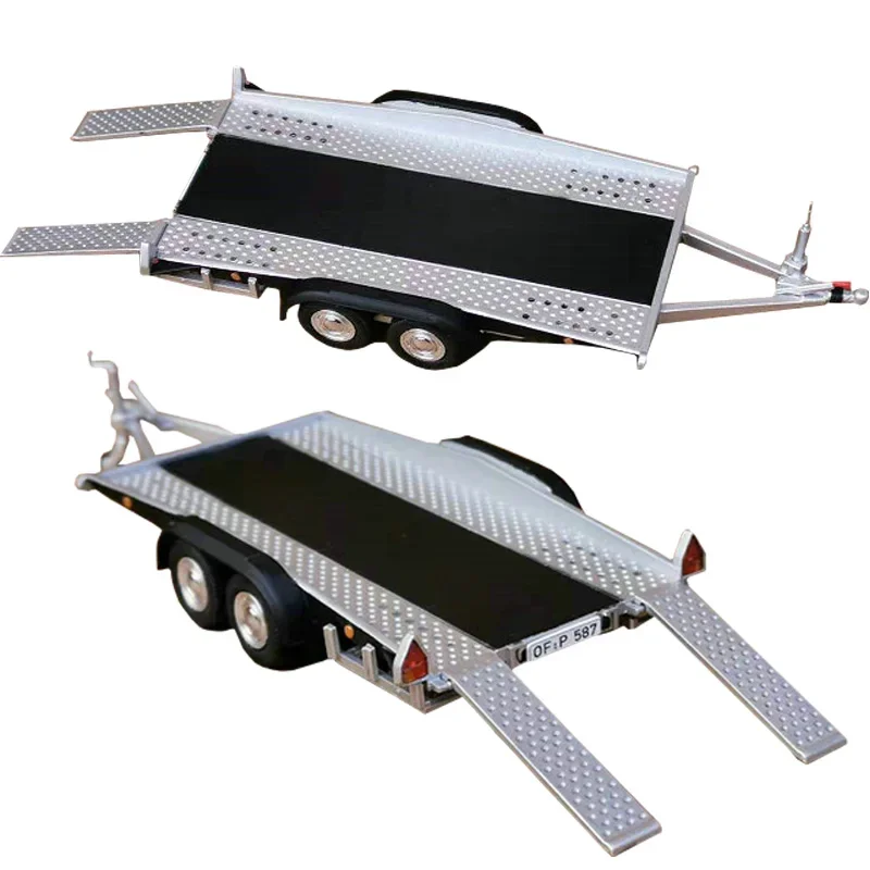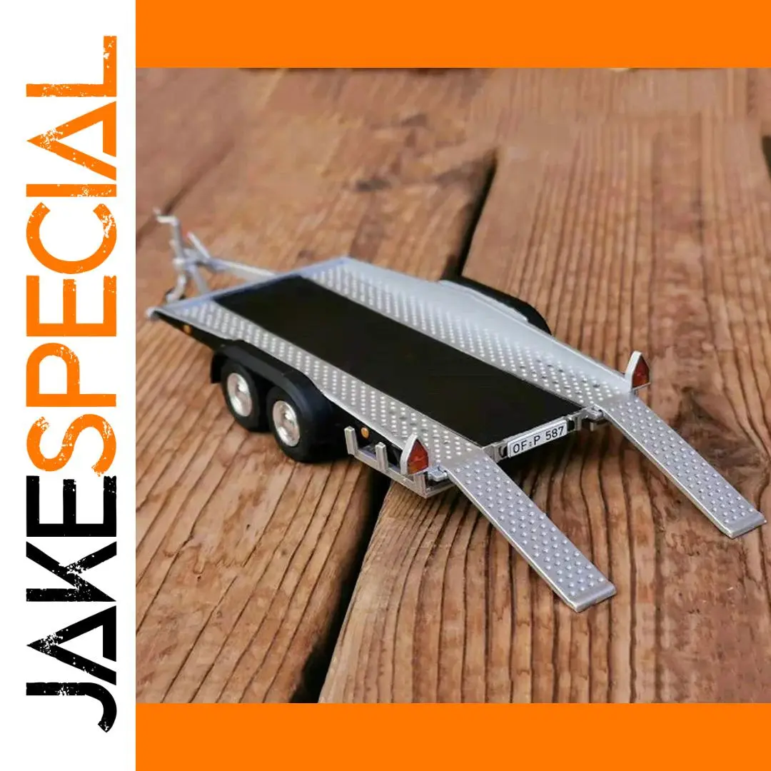 Experience the finest detail with this highly realistic 1/43 scale alloy die-cast trailer, designed to elevate your car model collection. Crafted from durable alloy and metal, it features a sleek black flatbed with a textured silver border, mimicking a reinforced loading surface. Accurate in proportion, it measures approximately 13 centimeters in length, 5 centimeters in width, and 2 centimeters in height, offering an authentic scale experience. The trailer includes detailed small, triangular red and white reflective signs at the rear for added realism. With meticulously crafted edges, polished wheels with silver accents, and a driver-friendly hitch, this model embodies industrial functionality blended with aesthetic precision. It’s perfect for collectors looking to enhance scene setups or display with their 1/43 scale car models.