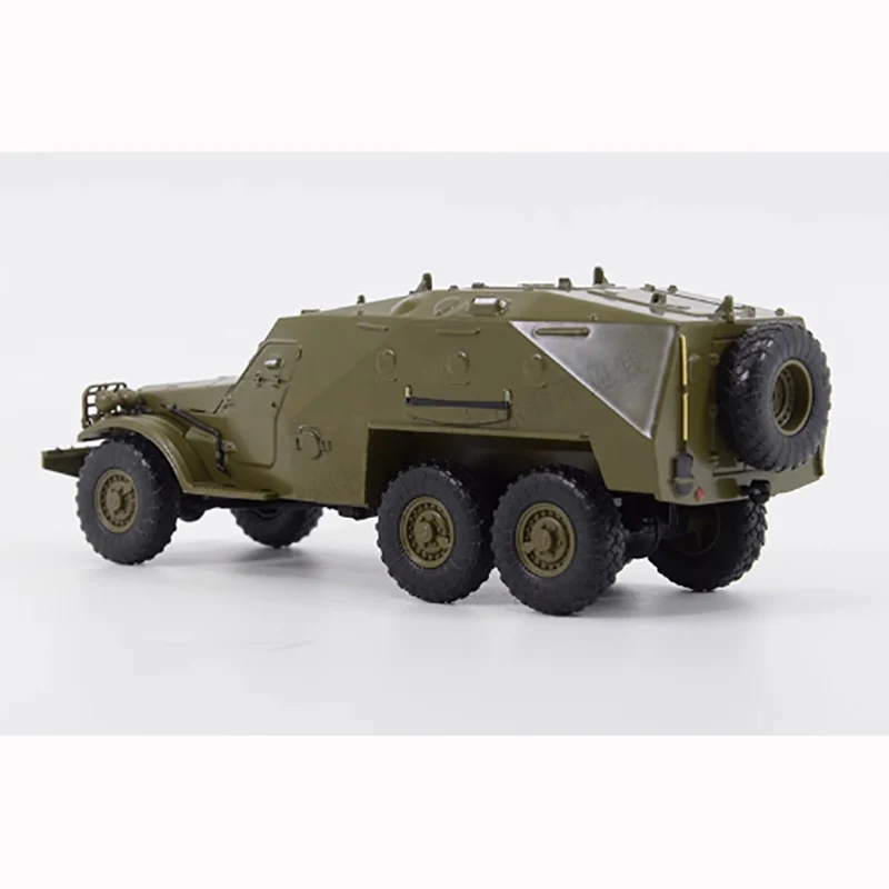 Experience the thrill of collecting with this stunning 1/43 scale diecast model of the BTR-152K armored vehicle. This meticulously crafted model showcases a matte olive green finish that enhances its rugged, military-inspired aesthetic. The angular body design features a detailed front grille, realistic headlights, and intricate panel lines that replicate authentic armor plating. Each of the six textured wheels is mounted on articulated axles, providing a sense of dynamic movement to your display. This model, measuring approximately 15.5 cm in length, is not only a captivating centerpiece for any collection but also a fantastic gift for enthusiasts.