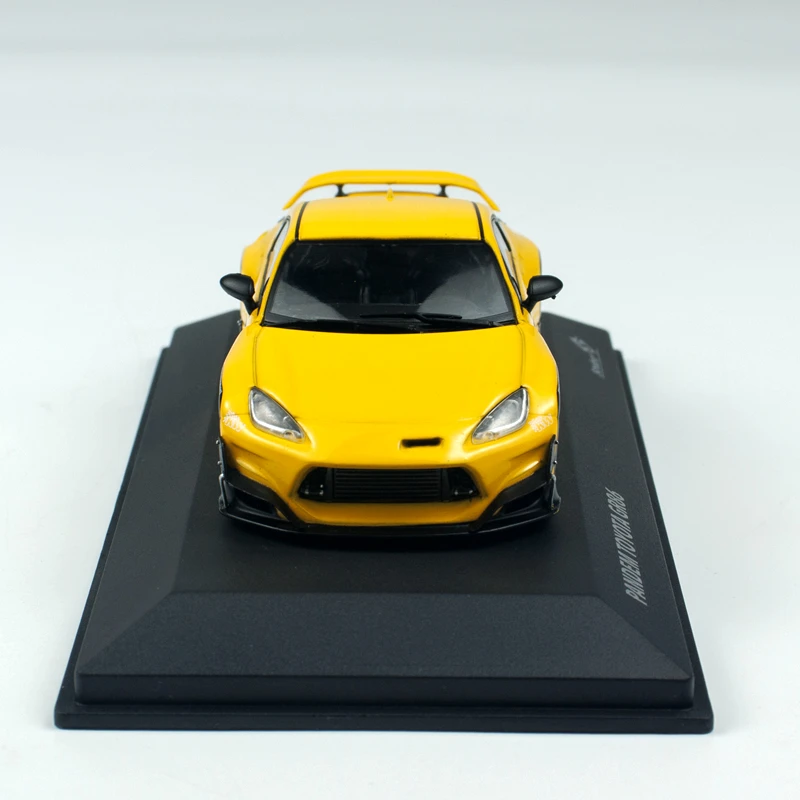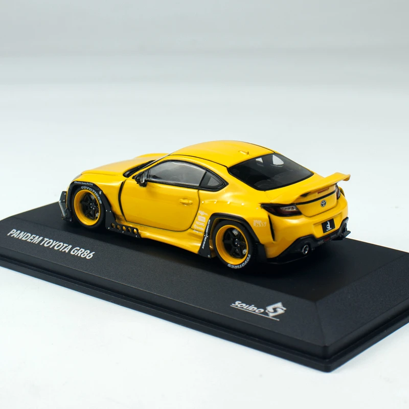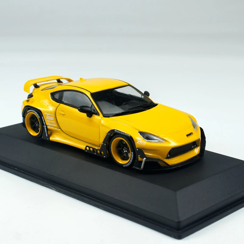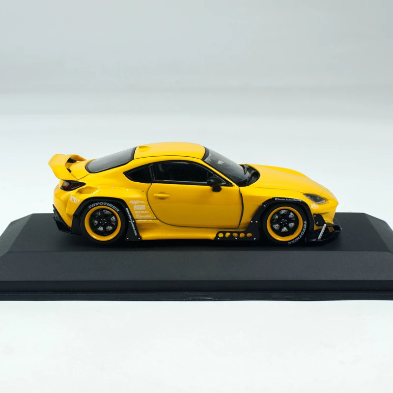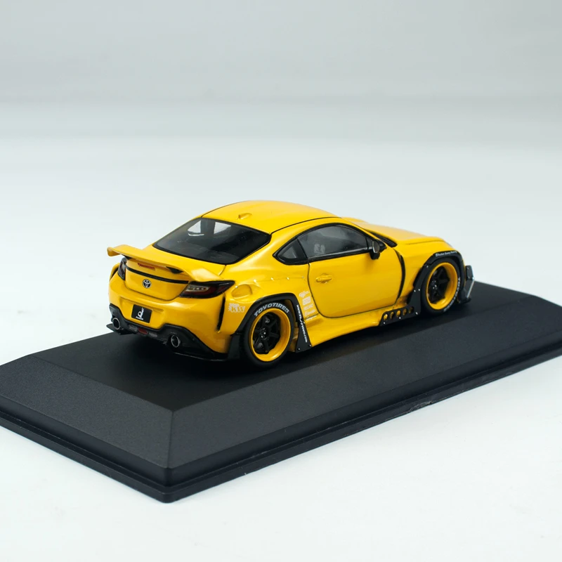 Experience the thrill of owning a meticulously crafted replica of the iconic Toyota GR86 with this vibrant yellow diecast model. Perfect for collectors, it captures every sleek curve and sporty detail of the original vehicle. The contrasting black accents on the roof, side mirrors, spoiler, and side skirts perfectly complement the bright yellow finish, creating a bold, eye-catching aesthetic. The model features carefully sculpted headlights, a detailed grille, and molded tail lights for increased realism. Its highly detailed wheels with yellow accents and tread patterns enhance its dynamic look, with the wheels capable of turning for added display versatility. Showcase this model proudly on your shelf and relive racing memories with every glance.