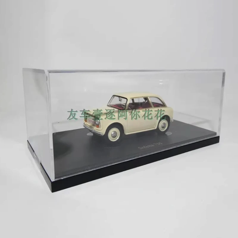 Experience a stunning replica of the vintage SOLETTA 750 with this 1/43 scale diecast resin model, measuring approximately 7 cm in length, 3.5 cm in width and height. Finished with a sleek, glossy creamy off-white paint, the model captures the classic rounded design and understated elegance of the original vehicle. Detailed textured grille, clear windows revealing a simplified interior, and matching hubcap wheels add to its authentic vintage charm. Ideal for collectors and decor enthusiasts, this static display is crafted for display purposes only, with no movable or electrical features, making it a timeless addition to any collection.