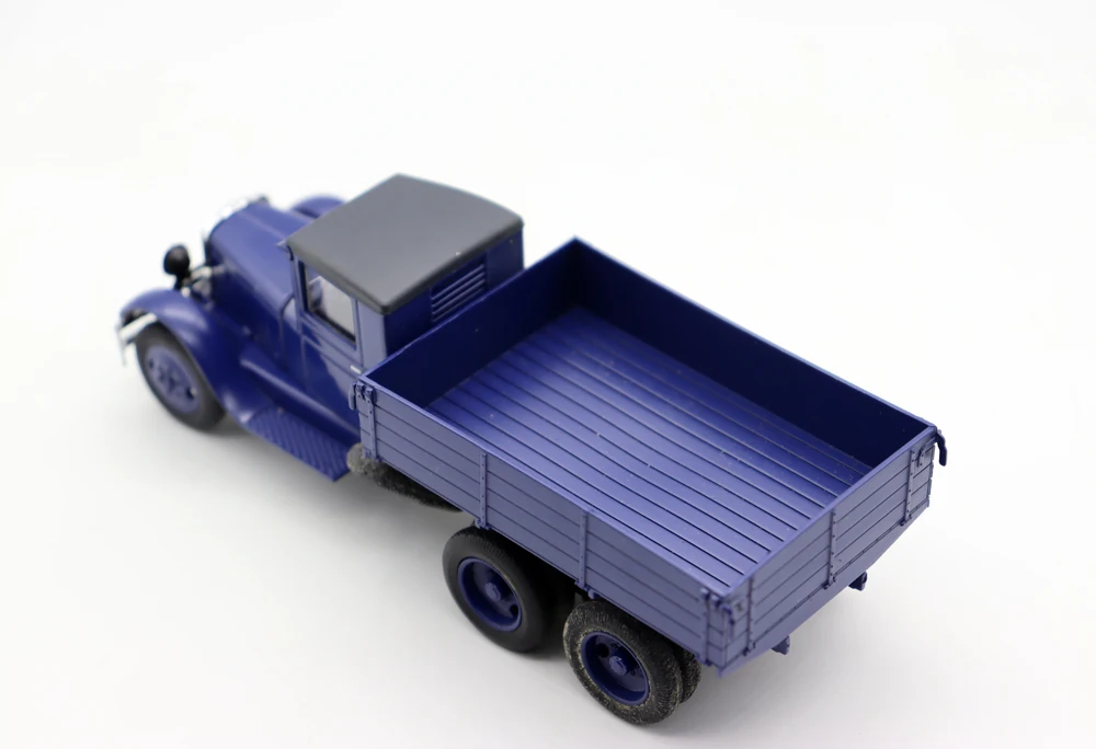 - Authentic design with a deep blue finish, black cab roof, and vintage white grille and bumper, capturing the classic aesthetic of the historic ZIS-6 flatboard truck.