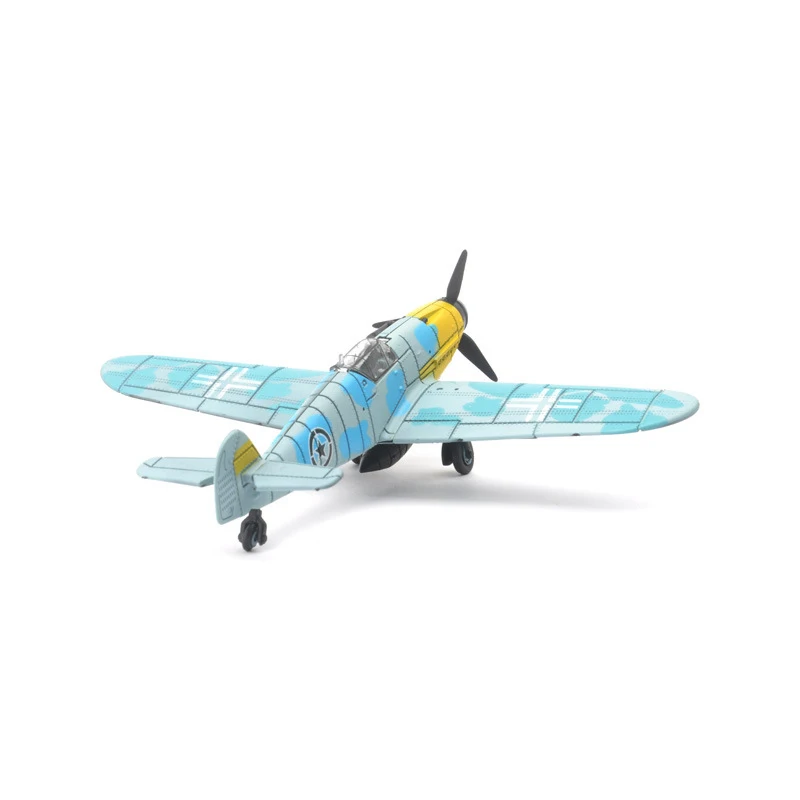 Visualize the stunning detail of this 1/48 scale WWII Fighter model, showcasing a sleek gray fuselage and intricately marked wings. The bold “FIGHTER” text and historical German crosses elevate its authenticity and charm. The clear cockpit canopy reveals a well-crafted interior, while the realistic black propeller adds depth to its design. Supported by a sturdy tricycle landing gear, this model is an exceptional collectible, perfect for display and educational purposes. Constructed from eco-friendly ABS plastic, it invites you to engage in a rewarding DIY assembly experience that connects you to the fascinating history of military aviation.