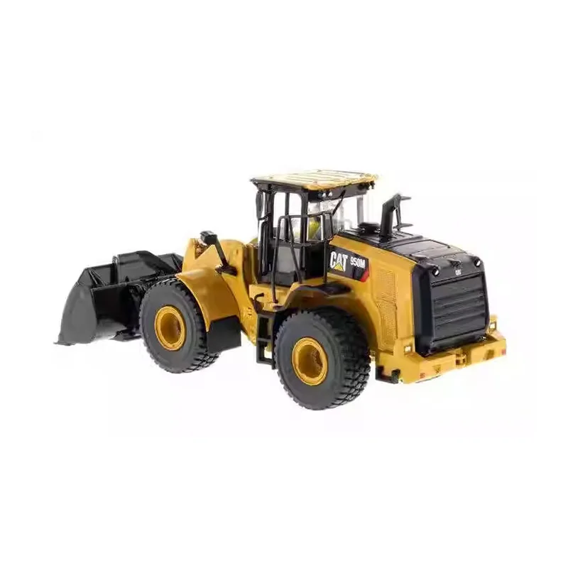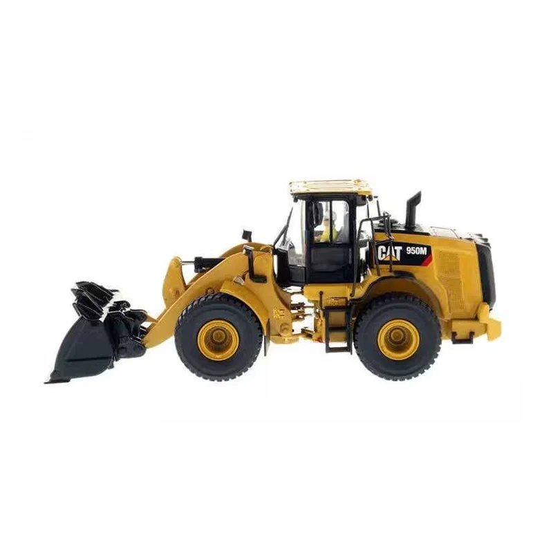 Bring a touch of industrial realism to your collection with this highly detailed 1/50 scale diecast model of the CAT 950M wheel loader, measuring 17.1 cm long, 5.9 cm wide, and 7.1 cm high. Crafted from alloy and plastic, this authentic replica features a vibrant yellow body, a black cab with transparent windows, and a miniature operator figure inside. The articulated arm extends naturally, ending in a black, tilting bucket, while textured tires with detailed treads sit on contrasting yellow rims. Decorated with caution decals and a prominent CAT logo, this model offers rugged authenticity, perfect for engineering enthusiasts and collectors aged 14 and above.