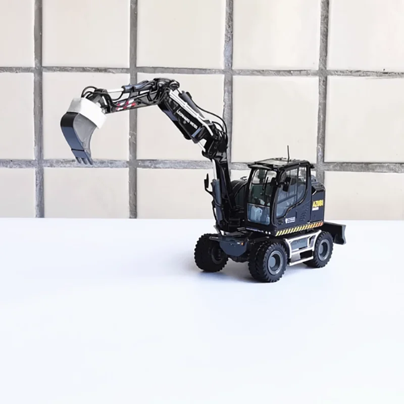 Experience the craftsmanship of this highly detailed diecast excavator replica, perfect for display and collection enthusiasts. Crafted from alloy and plastic, it features a sleek, dark-toned body with contrasting light-colored arm and bucket, enhancing its visual appeal. The transparent cab windows reveal intricate interior details, adding a layer of realism. The sturdy chassis rests on four robust wheels, emphasizing a rugged industrial appearance. Small safety stripes in yellow and black, along with decals and hydraulic line details, showcase meticulous craftsmanship. This model’s balanced aesthetic combines functionality with realistic design, making it ideal for adult hobbyists seeking a durable, static ornament that highlights precise detail and industrial charm.