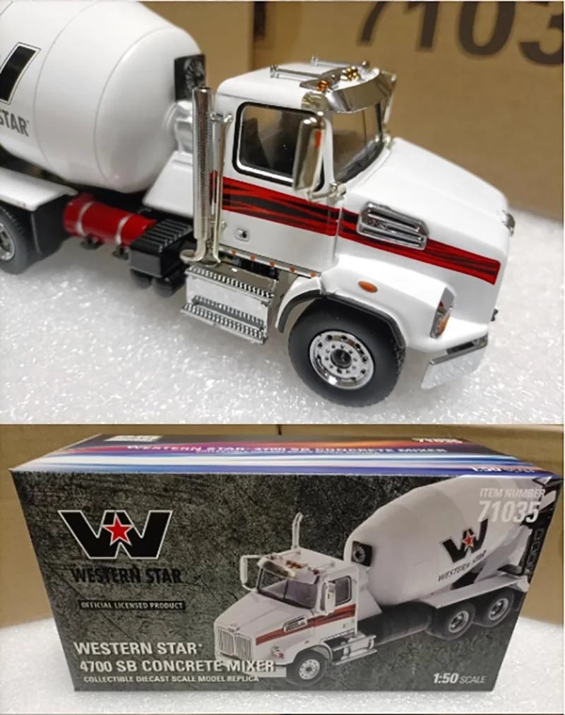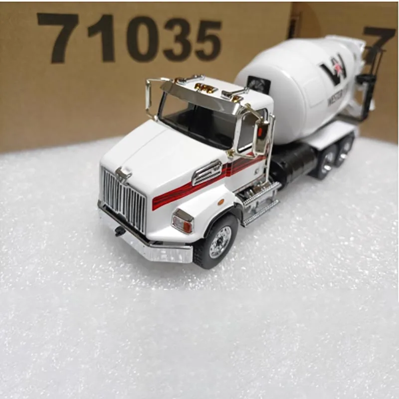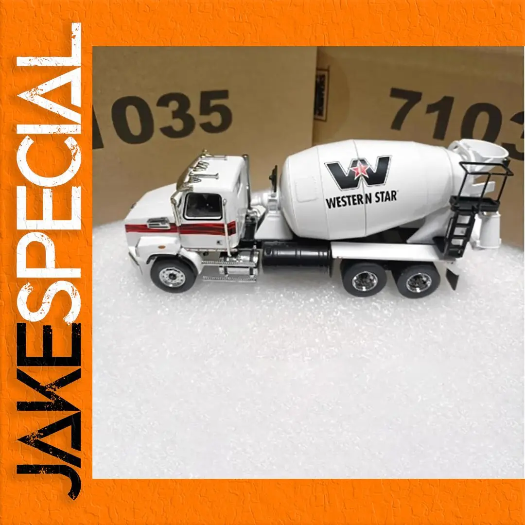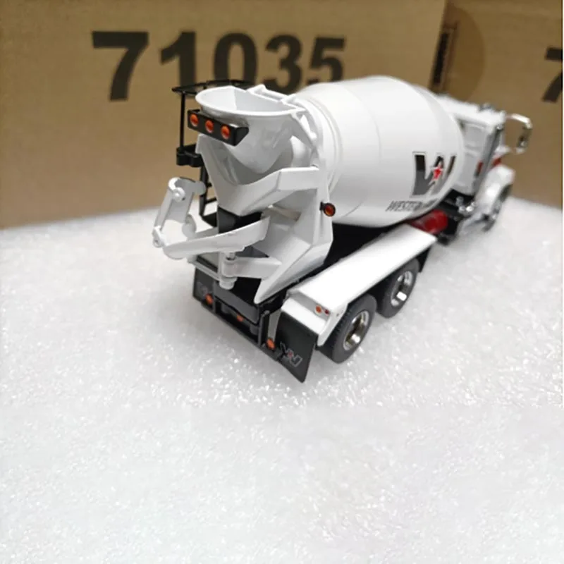 Experience the impressive craftsmanship of the DM 1/50 scale alloy Western Star concrete mixing transport truck model 4700 SB. Meticulously crafted from quality metal and plastic, this model showcases a glossy white exterior and detailed metallic accents. The striking black logo and red star on the mixing drum bring character and flair, making it a stunning piece for collectors or as a decorative gift. With features like a stylish ladder, chrome trims, and intricate grilles, this model emphasizes authenticity and sophistication. Designed solely for adult collectors, this static model is perfect for display purposes or thoughtful gifting. Start visualizing how this model could enhance your collection or home decor today!
