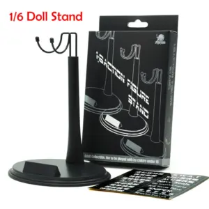 Experience the sleek, modern aesthetic of this black 1/6 scale figure stand, designed to elevate your collection. With a minimalist and contemporary style, it features a smooth matte finish that seamlessly blends into any display setup. The round, flat base with a slightly raised edge ensures stability, while the slim, cylindrical support pole provides a clean, understated look. The adjustable U-shaped arms allow you to customize the height and position of your action figures, securely holding them by the waist or torso without damaging their surface. Its lightweight construction of approximately 0.1 kg makes it easy to handle, making it perfect for showcasing your favorite figures at home or in a display case.