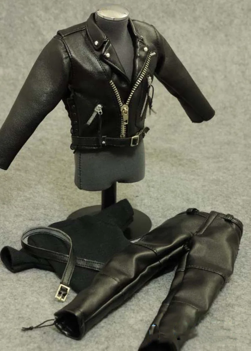 Enhance your 1/6 scale action figure collection with this detailed black leather jacket set, perfect for creating a rugged, street-smart look. Crafted from realistic fabric, this set includes a stylish asymmetric motorcycle-style jacket with silver hardware, a matching pair of pants, a black shirt, and a belt—all designed to fit 12 inches figures. Please note, the body is not included, allowing you to customize your figure precisely. Whether you’re customizing a soldier or a themed character, this set elevates your display with its authentic appearance and versatile styling. Bring your collectible figures to life and showcase their personality with this premium accessory set.