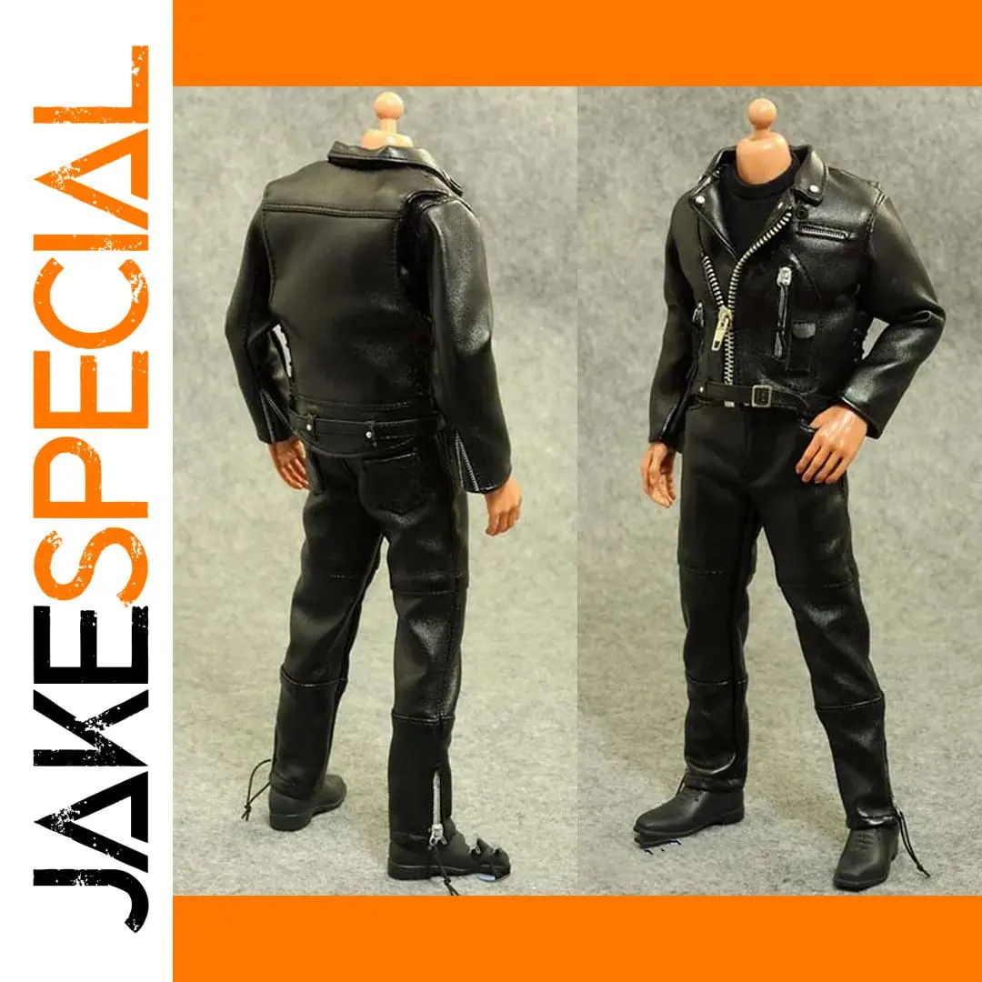 1/6 Scale Black Leather Jacket Set for Action Figures