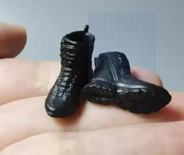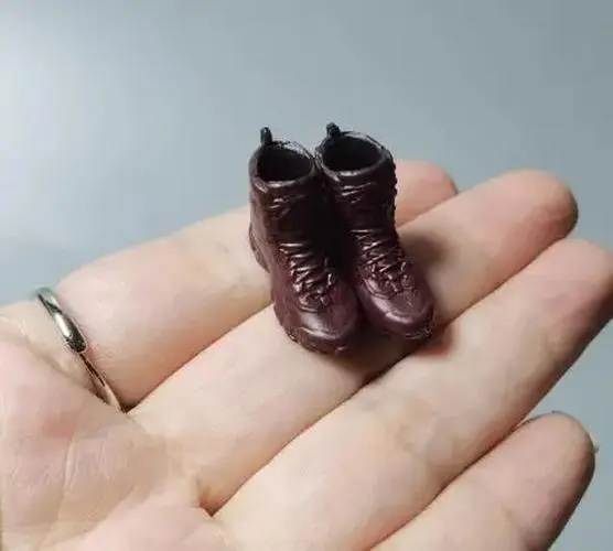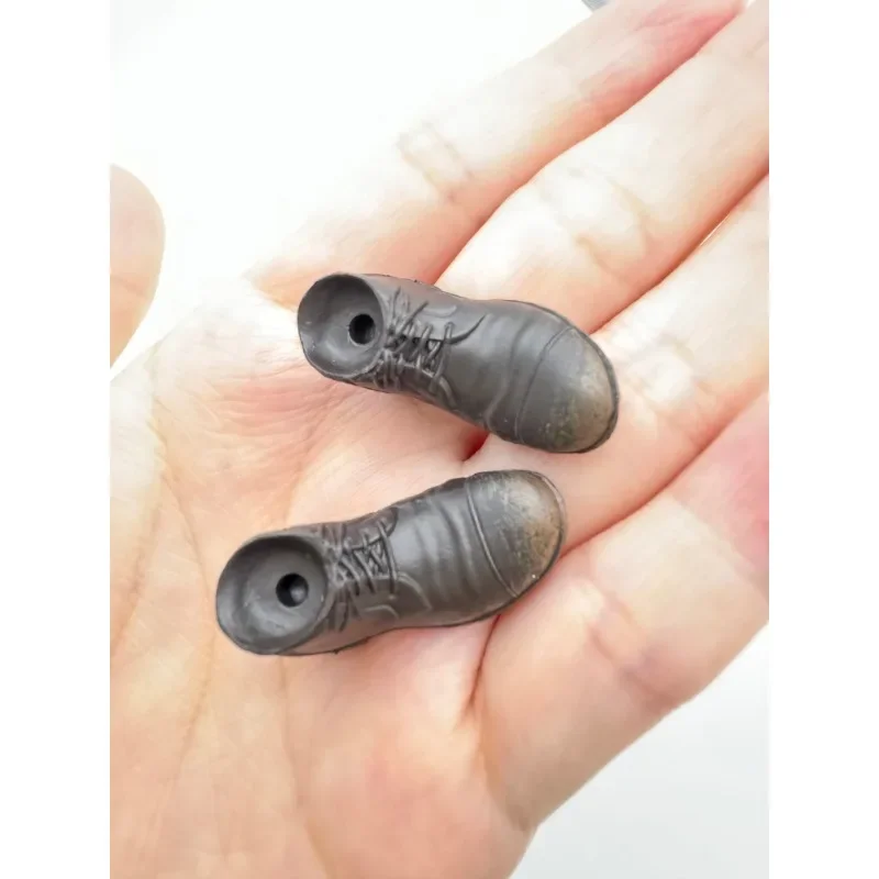 These exquisitely crafted miniature shoes are designed specifically for 1/6 scale action figures and 12-inch dolls, ensuring a perfect fit without hollow sections. Made from textured black flannel, they reflect a classic boot style complete with detailed stitching and eyelets. The shoes feature a polished finish, showcased by their rounded toes and a slightly scuffed bottom for a realistic, well-worn appearance. Ideal for collectors and enthusiasts, these shoes provide a stylish accessory for figures while being suitable for various celebrations such as Christmas and Halloween. Handmade with care, these shoes encapsulate detailed craftsmanship while being both functional and aesthetic.