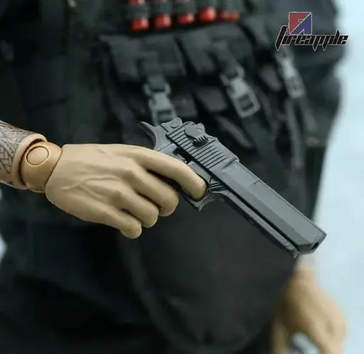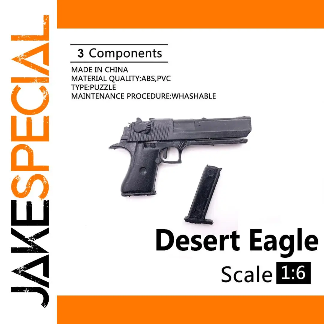 Step into the world of detailed collectibles with this meticulously crafted 1/6 scale Desert Eagle pistol. Designed exclusively for 12-inch action figures, it offers an exceptionally realistic appearance with its sleek black matte finish. Every contour, ridge, and textured panel has been carefully molded to mimic the look and feel of a real firearm, enhancing the authenticity of your display or cosplay setup. The body features smooth surfaces with finely detailed ridges on the slide and ergonomic grip with finger grooves and a thumb rest. The detailed barrel projection and detachable magazine, both matching in black and textured for realism, complete the look. This model elevates your collection, offering both aesthetic appeal and functional versatility.