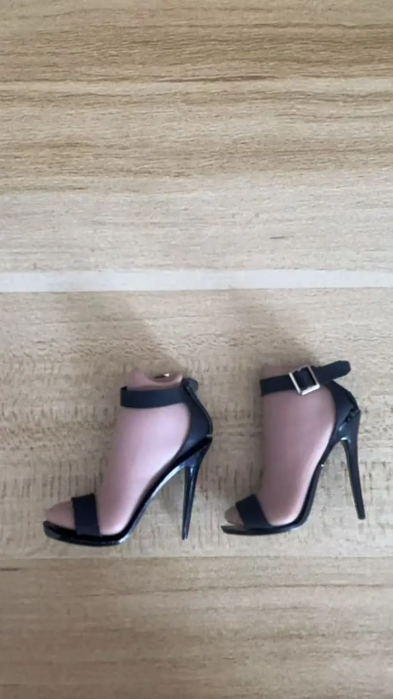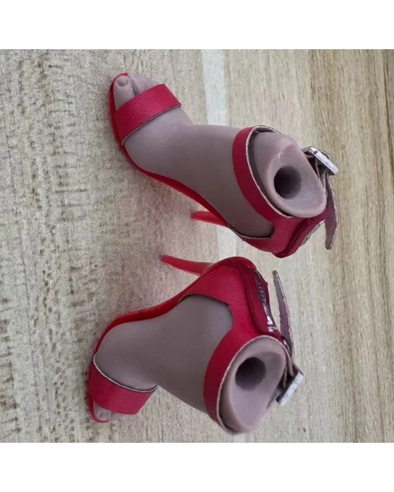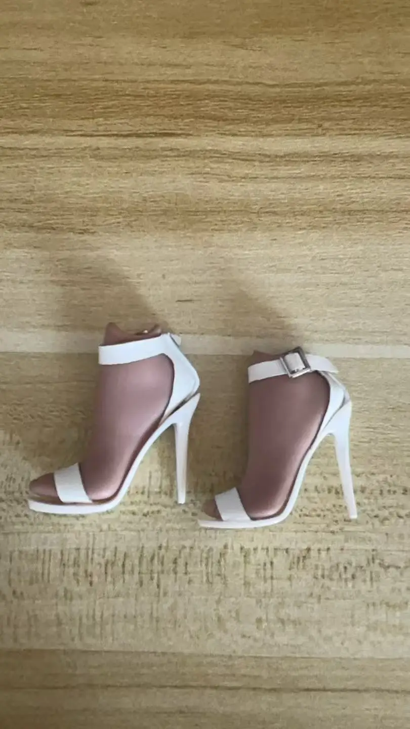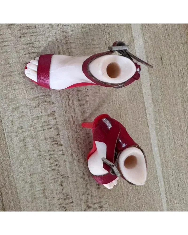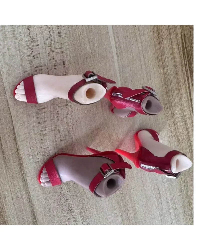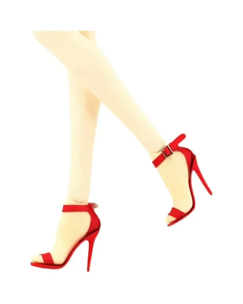 Create an elegant display with these 1/6 scale female high heel sandals, designed for 12-inch action figures. Crafted from flannel material, they boast a striking red or white finish, featuring a textured faux leather look, a non-hollow design, lace-up front with metallic buckles, and an ankle strap. To fit your doll perfectly, heating with a hairdryer is recommended before slipping them on. Please specify your preferred red shade—wheat suntan or usual white. These stylish, finished model shoes are ideal for collectors and enthusiasts seeking detailed accessories to enhance their 12-inch doll collections.