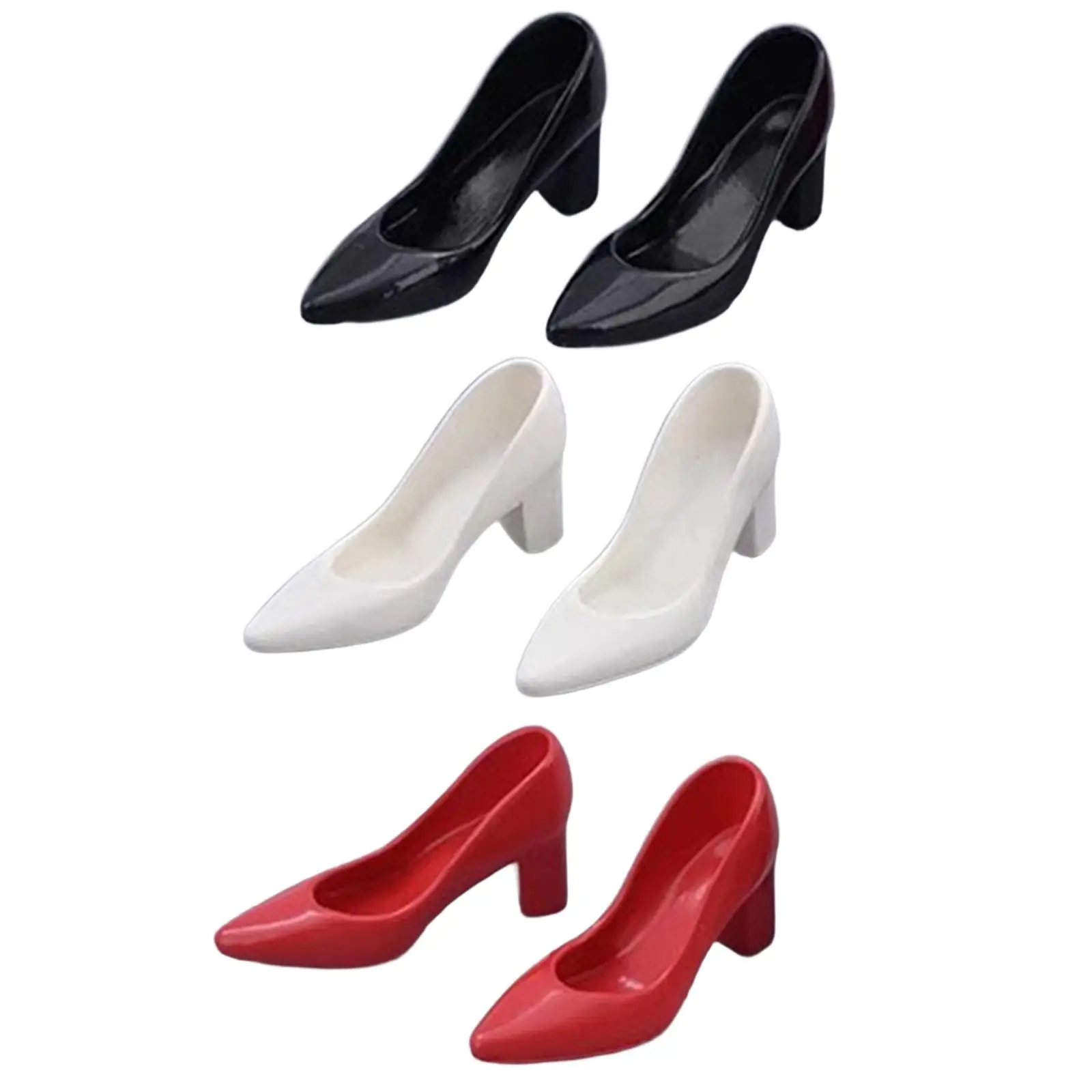 Experience the charm of these miniature high-heeled shoes, crafted specifically for 12-inch female dolls and action figures. Designed with meticulous attention to detail, the shoes feature a glossy, smooth PVC finish, giving them a realistic and polished appearance. Their classic high heel design includes pointed toes and thick cylindrical heels that taper slightly, achieving a perfect balance of style and stability. Available in three striking colors—black, white, and red—each pair effortlessly enhances any doll display or collection. Whether you're showcasing a glamorous wardrobe or creating a unique scene, these shoes add a touch of sophistication and fun. Compact yet detailed, they're a must-have for enthusiasts and collectors alike.