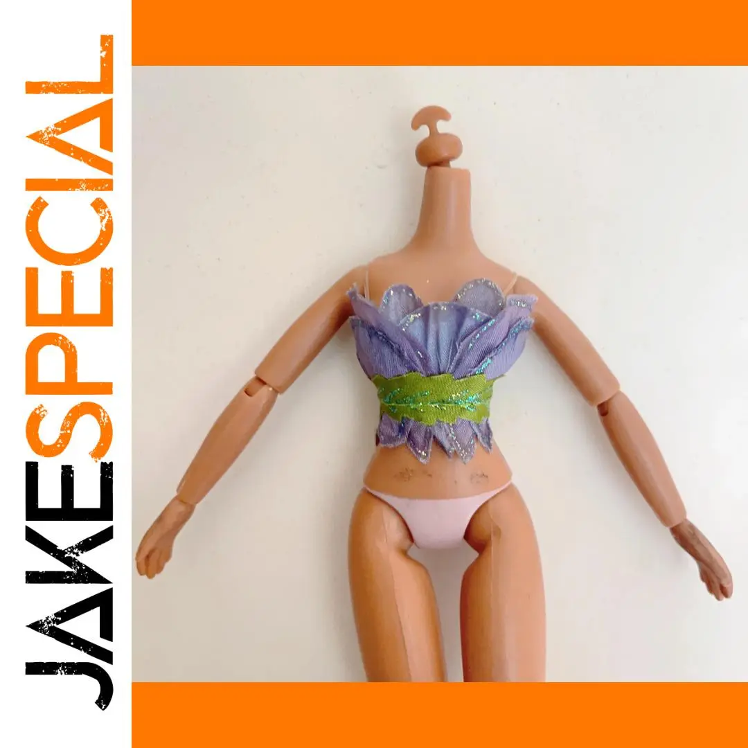 This vibrant and whimsical accessory for 1/6 scale fashion dolls showcases a stunning flower-inspired outfit. The enchanting lavender top, designed to resemble delicate petals, captures the eye with its layered appearance and subtle shimmer. A contrasting green ribbon gracefully cinches the waist, enhancing the overall charm of the ensemble. Complemented by a simple pale pink bottom, this outfit promises versatility for both display and imaginative play. While the showcased doll torso demonstrates the outfit's fit, please note that the doll itself is not included, allowing you to visualize the possibilities for your collection and display.
