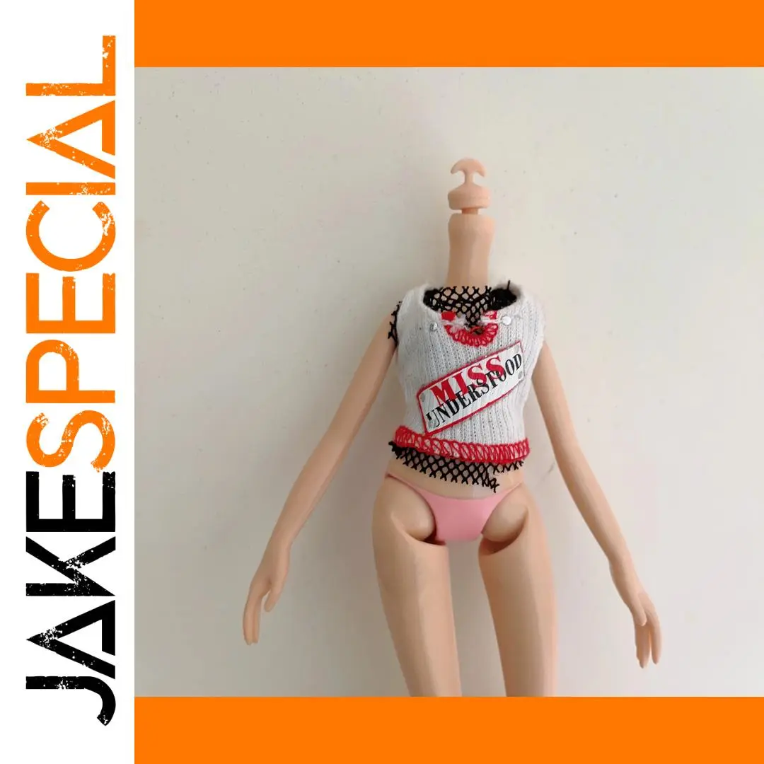 Elevate your collection with this trendy fashion doll shirt designed for 1/6 scale dolls. Crafted with attention to detail, this stylish sleeveless top features the phrase “MISS UNDERSTOOD” in striking print, along with eye-catching accents like silver studs and a dramatic layered look. The shirt’s vintage flair adds a unique touch to your doll’s wardrobe, making it perfect for both display and play. Remember, the doll shown wearing the shirt is for illustrative purposes only and is not included. This accessory promises to add character and flair to any 1/6 scale doll you choose to showcase.