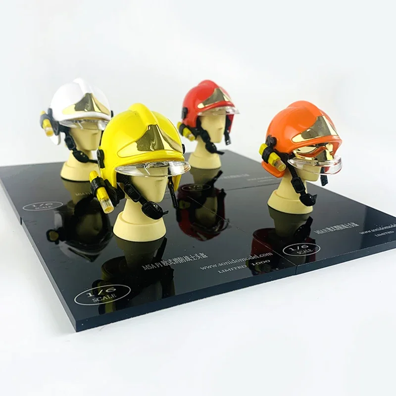 The 1/6 Scale Firefighter Helmet models exemplify outstanding craftsmanship and design. Each helmet boasts a glossy finish in vibrant colors, including yellow, white, orange, and red, and measures approximately 2-3 cm in height. Made from durable ABS plastic, these helmets showcase realistic features like a clear visor and intricately designed chin straps, perfect for collectors and hobbyists alike. Displayed on a sleek black base, they complement a range of collections and serve as fantastic decorative pieces. Ideal for movie and TV themed setups, these helmets are a must-have addition for enthusiasts looking to enhance their display with high-quality model accessories.