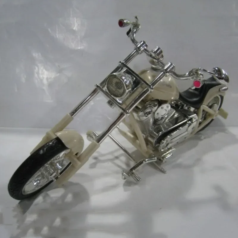 - Includes silver-painted handlebars, precise metallic accents, and detailed headlight and mechanical features, emphasizing craftsmanship and authenticity.
