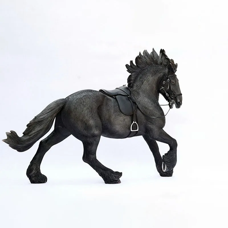 Immerse yourself in the detailed craftsmanship of this highly realistic 1/6 scale horse model, perfect for collectors and diorama enthusiasts. Crafted from resin, it measures compatibly with 1:6 scale figures and showcases a sleek, dynamic trot pose that captures movement and vitality. The coat features shades represented by codes like ‘0585', ‘005', and others, giving options for varied aesthetic preferences. Its finely sculpted mane and tail appear tousled and in motion, adding a lively touch. The sturdy resin finish highlights intricate musculature and lifelike details, with contrasting light-colored hooves to accentuate depth. Whether for display, collection, or creative projects, this model brings natural beauty and realism to any scene with elegance.