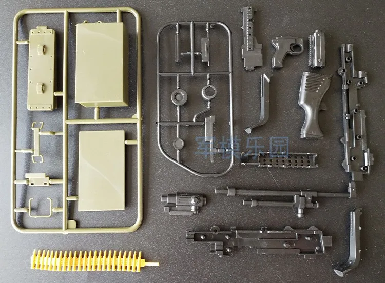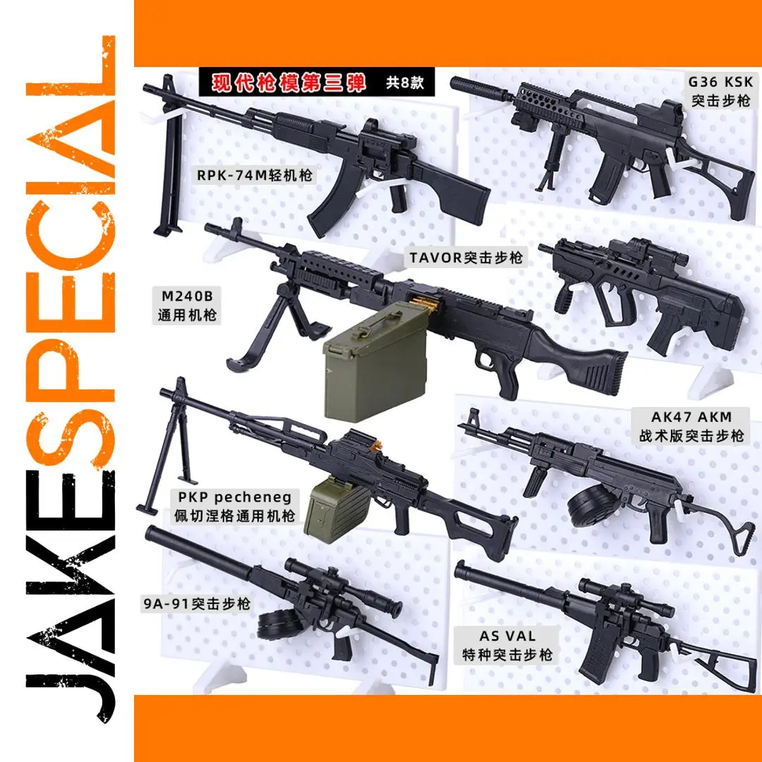 - An assortment of detailed 1/6 scale PVC model firearms, including G36K, SKS, M240, PKP, TAVOR, and AK variants for versatile display options.