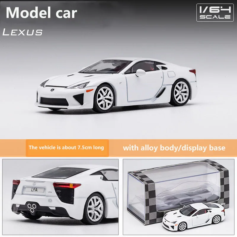 Discover the 1/64 scale alloy diecast model of the Lexus LFA supercar, perfect for collectors and enthusiasts. This meticulously crafted miniature captures intricate details with a durable metal alloy body and eco-friendly plastic parts. Its realistic proportions and high-quality finish make it an excellent decoration for your desk, a unique gift, or a collectible to showcase your passion for sleek automotive design. Compact yet impressive, this model enhances any space and sparks conversations. Easy to handle and designed for display, it brings a touch of luxury and sophistication to your collection. Elevate your hobby with this stunning, finely detailed car model.
