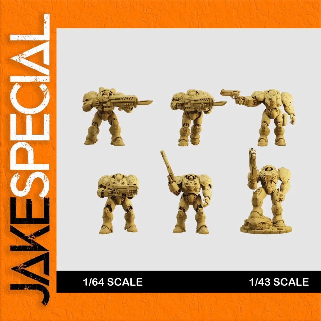 Imagine enhancing your miniature collection with this stunning set of robot warrior figures, designed for both diorama enthusiasts and gaming aficionados. Crafted meticulously in light tan resin, these figures exude a captivating science fiction flair with intricate armor plating and mechanical details. The 1/64 scale figures, standing between 2.6 to 3 cm tall, capture dynamic action stances, while the more imposing 1/43 scale models, measuring 3.8 to 4.2 cm, display elaborate poses. Their high level of detail is the result of cutting-edge 8K 3D printing technology, providing you with truly unique collectibles that are ideal for display or play.