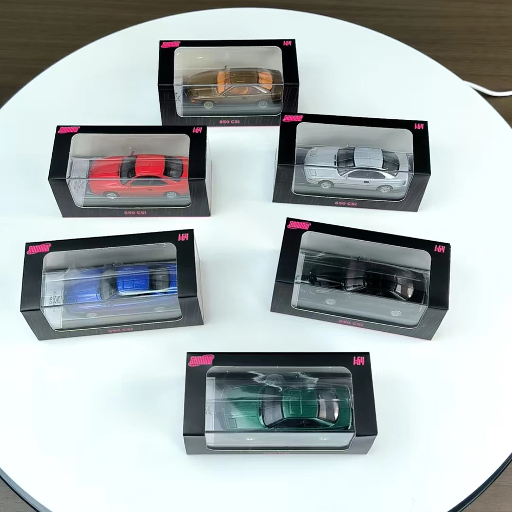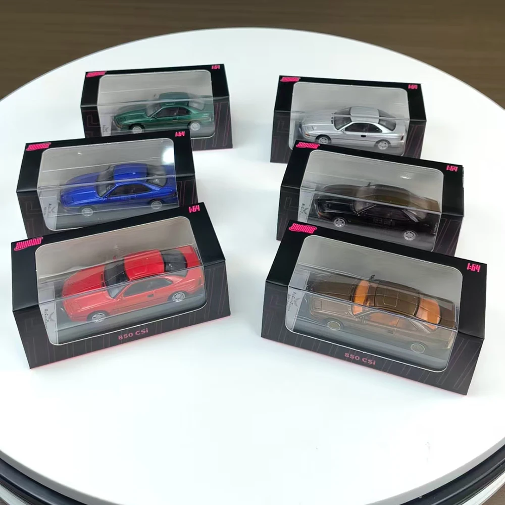 This highly detailed 1/64 scale diecast alloy model of the BMW 850 CSi measures 7 x 3 x 3 cm and weighs 0.08 kg with packaging. Crafted from alloy and eco-friendly ABS plastic, it is available in vibrant colors including black, blue, brown, green, red, and silver, all with a glossy finish. The model features realistic body lines, detailed front grilles, headlights, side mirrors, and transparent windows revealing interior details, complemented by silver-colored wheels with visible tires. Ideal as a collectible, display ornament, or thoughtful gift, its compact size and high craftsmanship bring a striking, realistic representation of this classic sports car to any enthusiast’s collection.