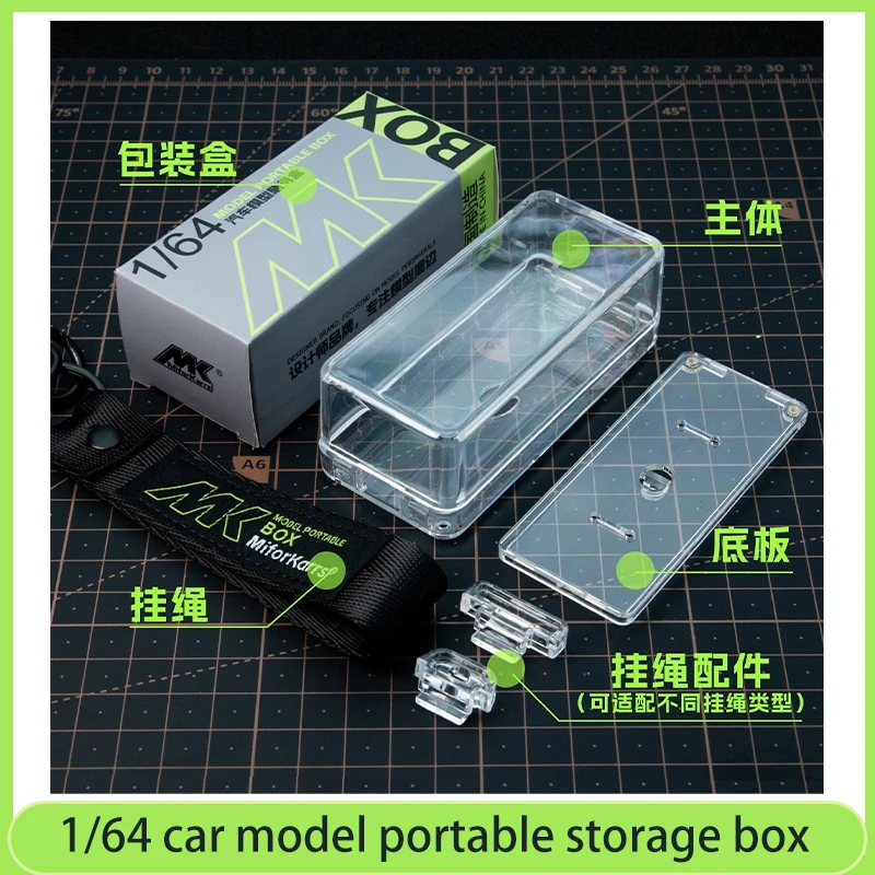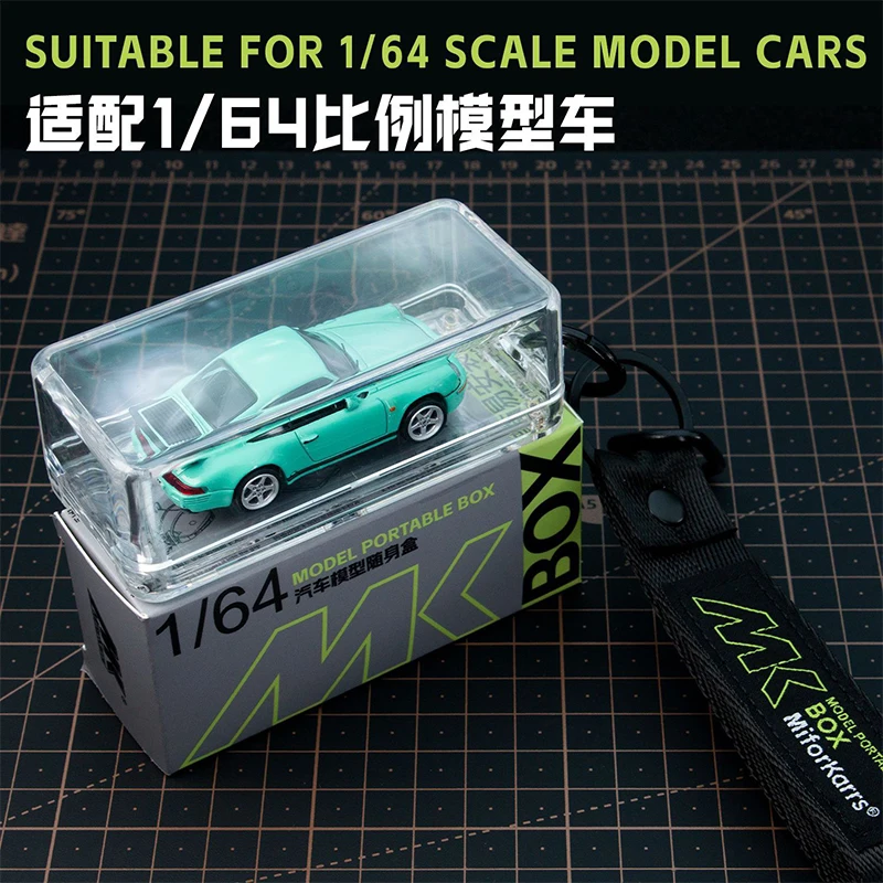 Experience the perfect blend of protection and visibility with this stylish transparent display and storage box designed specifically for 1/64 scale miniature sedan, racing, and sports cars. Crafted from high-quality metal, it features a minimalistic rectangular plastic body with smooth rounded edges and a slightly domed lid, offering a modern, streamlined look. The clear plastic allows you to enjoy full visibility of your miniature car while keeping it safe from dust and damage. Its compact, portable design includes a black lanyard strap with vibrant neon green MK branding, making it easy to carry your prized miniature car anywhere. Ideal for collectors who value practicality, style, and easy access to their models.