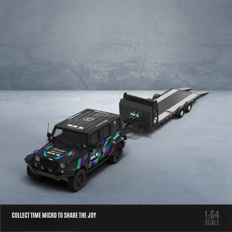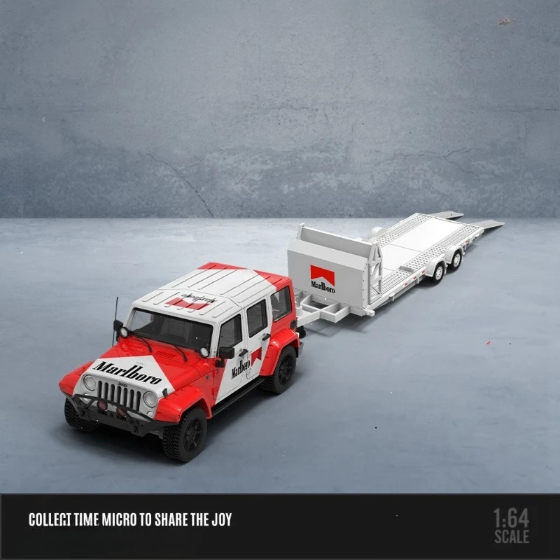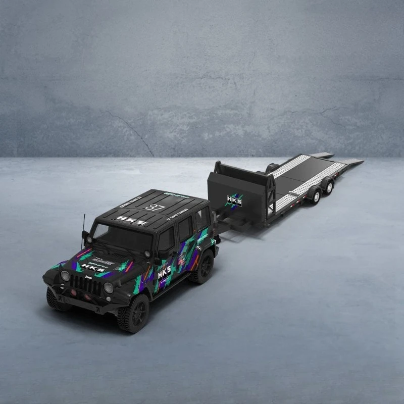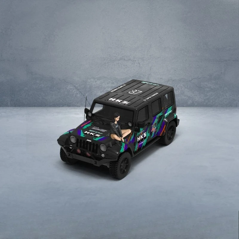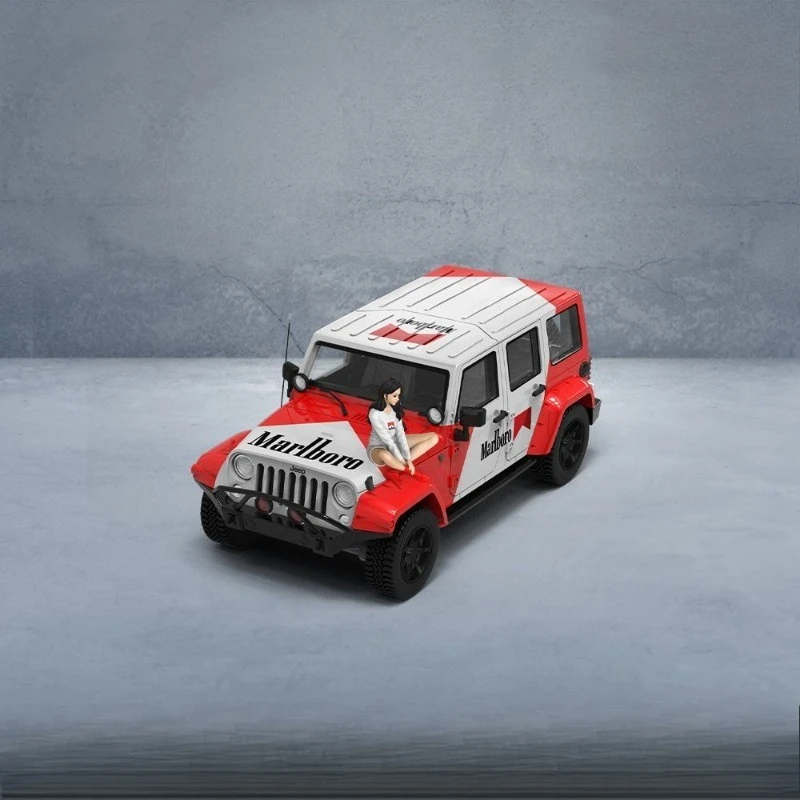 Experience the thrill of owning this meticulously crafted 1/64 scale diecast model of a Jeep Wrangler, featuring exclusive collaboration branding with Marlboro and HKS. Perfect for collectors and automotive enthusiasts, this model captures the iconic design and sporty spirit of the original vehicle. Made from high-quality metal, plastic, and rubber, it offers durability and a realistic appearance. The vibrant graphic patterns on the black body or the bold red accents on the white version highlight the model's detailed craftsmanship. Compact yet striking, it fits perfectly on shelves or desk displays, allowing you to showcase your passion for cars and collectibles. With its vivid colors and intricate design, this model invites you to relive the excitement of automotive culture in a miniature form.