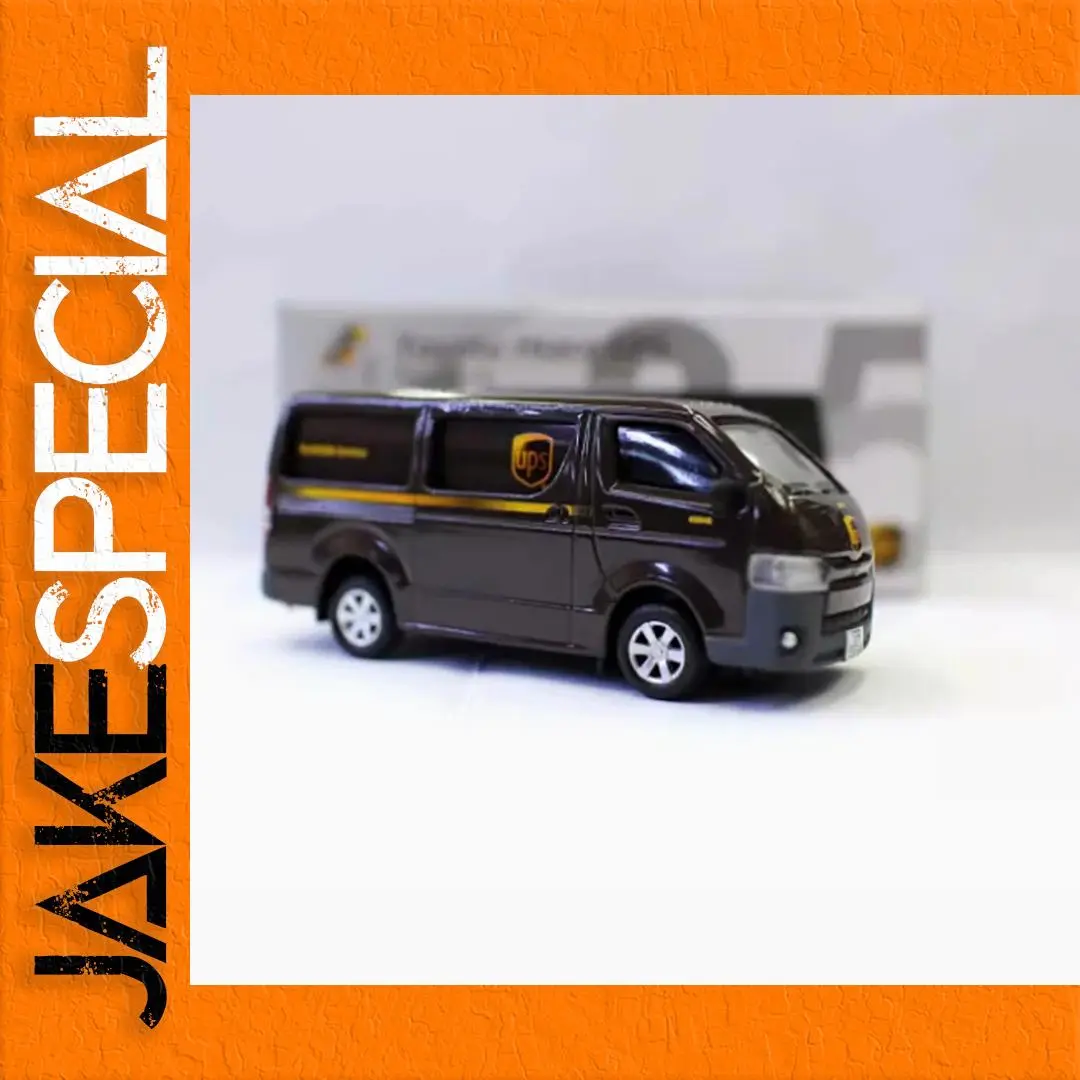 This stunning diecast model van is a 1:64 scale replica of a Toyota Hiace, designed to resemble a UPS carrier vehicle. It features a rich dark brown color with a glossy finish that highlights its sleek design elements, including a modern front grille and a prominent UPS logo outlined in yellow. Measuring approximately 7 cm in length, 3.4 cm in width, and 4.2 cm in height, this compact collectible is crafted from durable alloy and plastic. Ideal for study decoration, model display, or gifting, this finished ornamental piece is perfect for adult collectors.