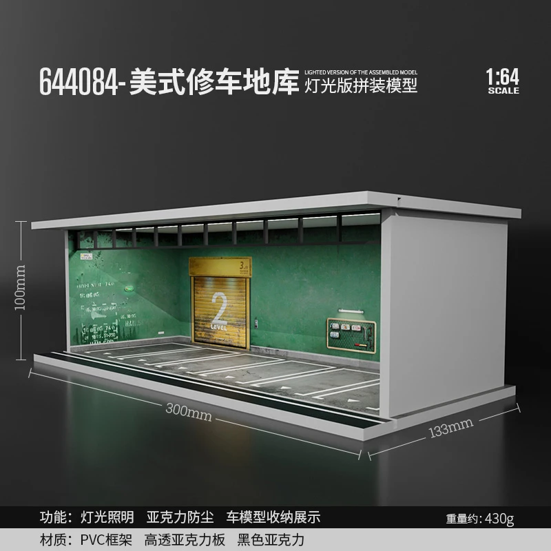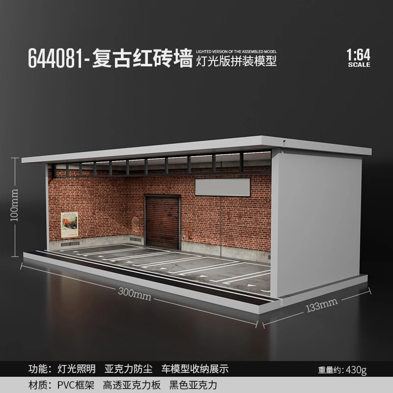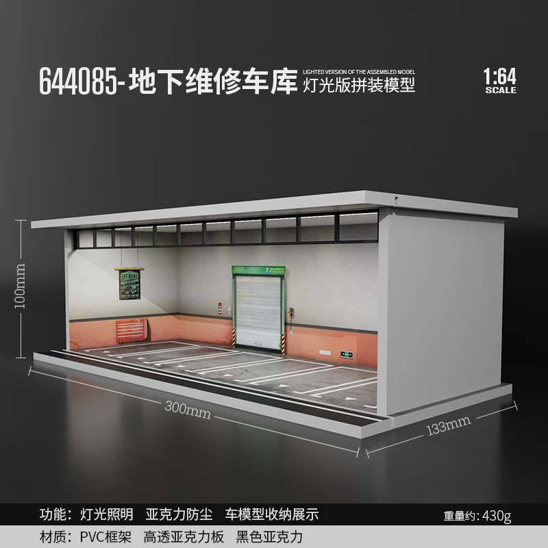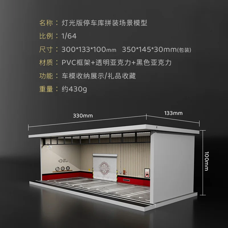 Transform your collection with this highly detailed diorama car garage scene, measuring approximately 30cm by 13.3cm by 10cm. Designed for car enthusiasts and collectors, this model creates a realistic parking lot display, perfect for showcasing your favorite vehicle models. The craftsmanship reflects professional standards, adding a touch of authenticity to your collection. With its LED lighting features, you’ll enjoy a visually captivating scene that enhances any display setup. Whether you’re an avid collector or simply love detailed miniature scenes, this product offers a unique and engaging way to arrange your models. Visualize your collection coming to life; once you add this diorama, your display will stand out with charm and realism.