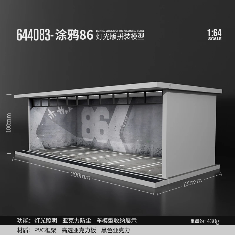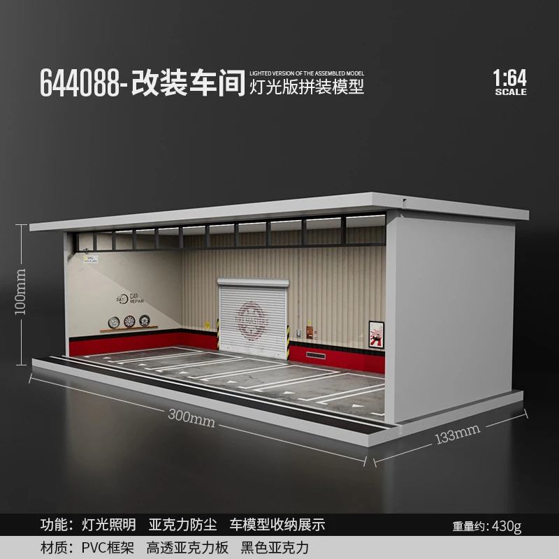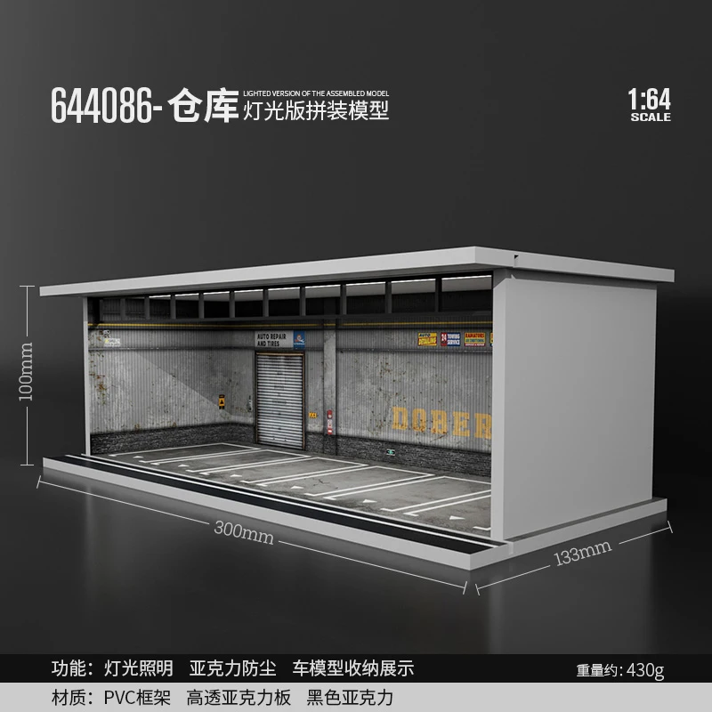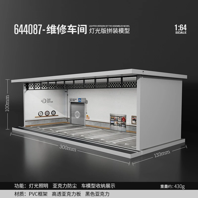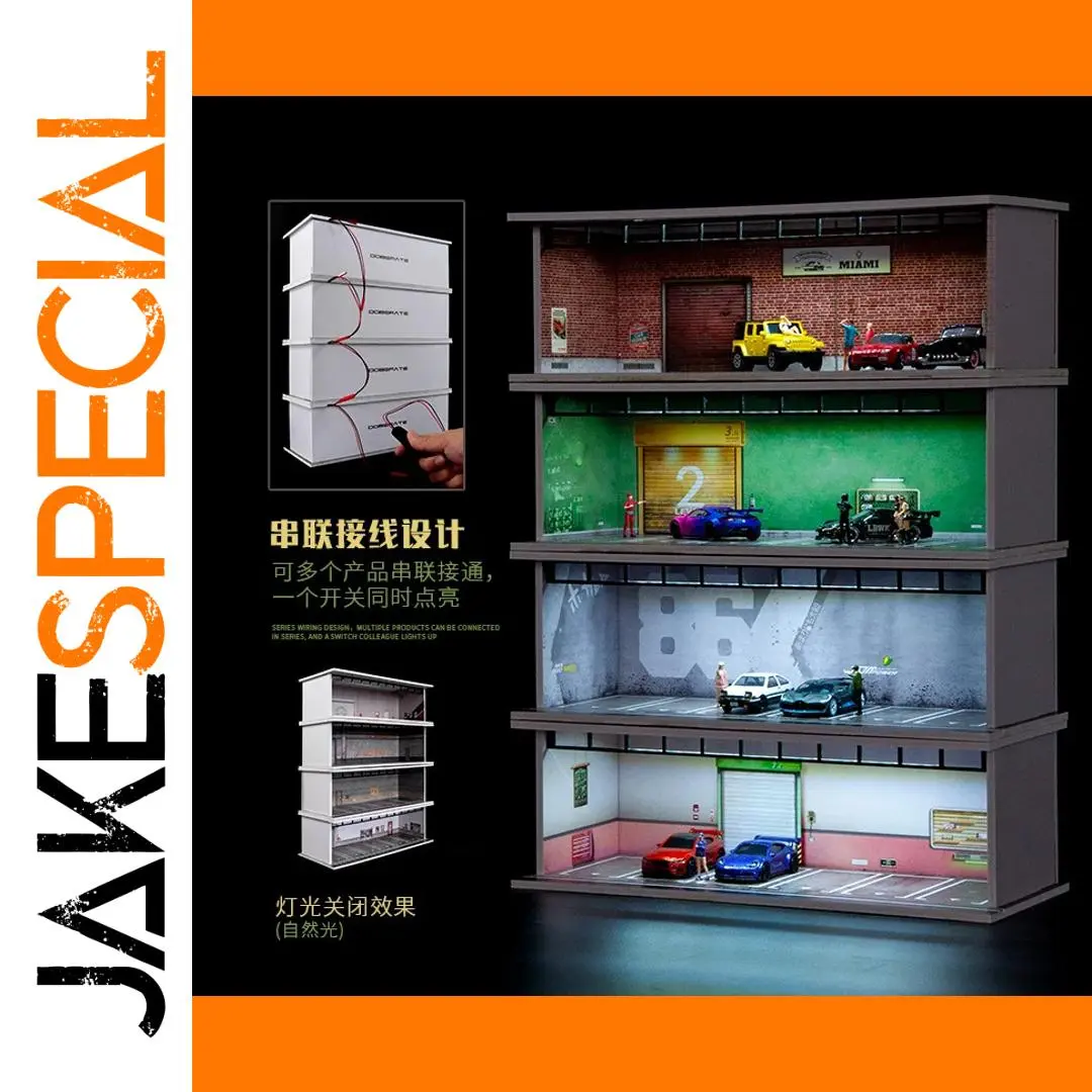 Transform your collection with this highly detailed diorama car garage scene, measuring approximately 30cm by 13.3cm by 10cm. Designed for car enthusiasts and collectors, this model creates a realistic parking lot display, perfect for showcasing your favorite vehicle models. The craftsmanship reflects professional standards, adding a touch of authenticity to your collection. With its LED lighting features, you’ll enjoy a visually captivating scene that enhances any display setup. Whether you’re an avid collector or simply love detailed miniature scenes, this product offers a unique and engaging way to arrange your models. Visualize your collection coming to life; once you add this diorama, your display will stand out with charm and realism.