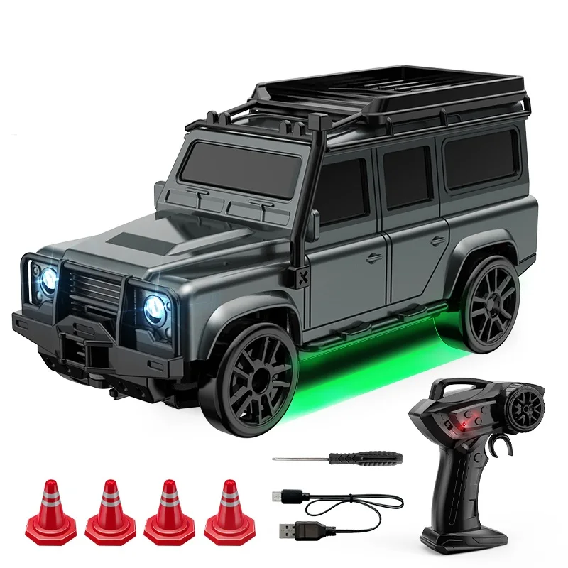 Experience thrilling drifting with this 1/64 scale RC car featuring a sleek, aerodynamic body finished in vibrant colors such as yellow, grey, blue, and black. Powered by a 3.7V charging-compatible system, it boasts a durable plastic construction, textured tires optimized for high-performance drifts, and a high-tech 2.4 GHz remote control with 4 channels for precise maneuvering up to 15 meters away. Designed for hobbyists aged 14 and above, this ready-to-run vehicle offers a stylish, performance-oriented look with sharp lines, vivid contrasting accents, bright LED front lights, and a 30-day warranty, perfect for creating exciting racing scenarios and enhancing your collection.