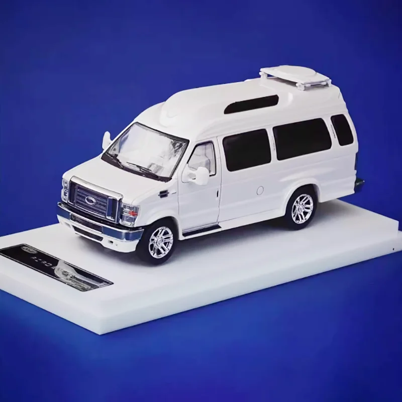 This highly detailed 1/64 scale diecast model of an E350 RV is crafted from alloy and plastic, featuring a sleek white body accented with black-tinted windows and subtle surface detailing. The boxy design is highlighted by a slightly raised roof and realistic proportions, with silver alloy-style rims on rubber tires. Perfect for collectors and displays, it is intended solely for static decoration or gifting, with no electrical components. Suitable for ages 14 and above, the model showcases fine craftsmanship, capturing the authentic look of a camper van in miniature form. Dimensions are measured manually, so slight deviations may occur, making it a must-have for enthusiasts seeking realistic and collectible miniatures.