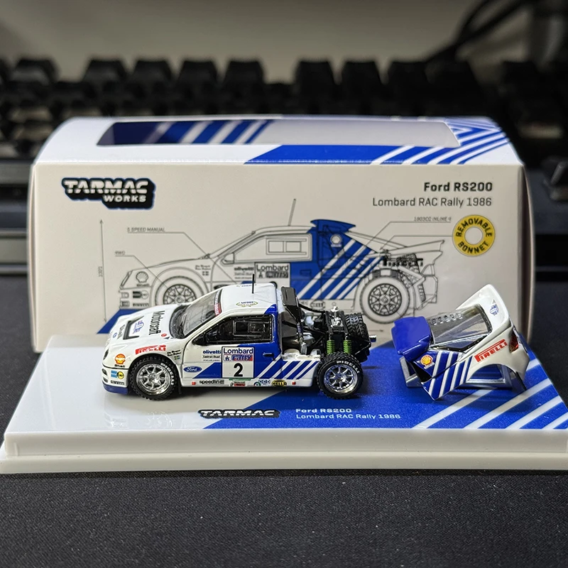Experience the thrill of rally racing with this TW Diecast Car model, featuring the iconic Ford RS200 in a stunning 1/64 scale. With its vibrant colors and authentic design, this model captures the essence of rally cars, showcasing the smooth contours and detailed features that car enthusiasts adore. The bright red model exhibits a sporty aesthetic with a unique hood scoop, while the predominantly white variant boasts striking blue and red racing stripes alongside sponsorship logos for a true racing look. Made with durable metal, alloy, and plastic components, this diecast model is perfect for both display and imaginative play.