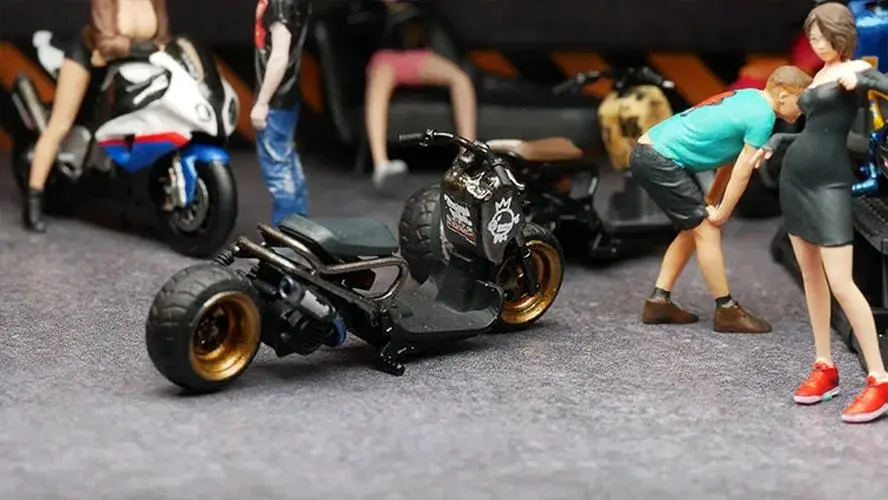 This striking 1/64 Scale Japanese Zoomer Original Hella Flush Modified Motorcycle Doll is a must-have for collectors and diorama enthusiasts. Featuring a vibrant orange body with eye-catching black accents, this unpainted model brings an authentic touch to your scenes. The motorcycle measures approximately 3.8 cm in length and is made from high-quality resin, ensuring the perfect detail for your transportation-themed displays. As you dive into creativity, envision customizing this piece with your own paintwork. Remember, it requires glue for secure mounting, making it an engaging project that transforms your model display into a truly unique showcase.