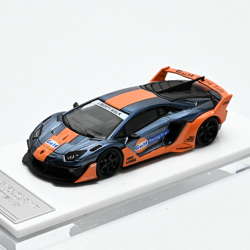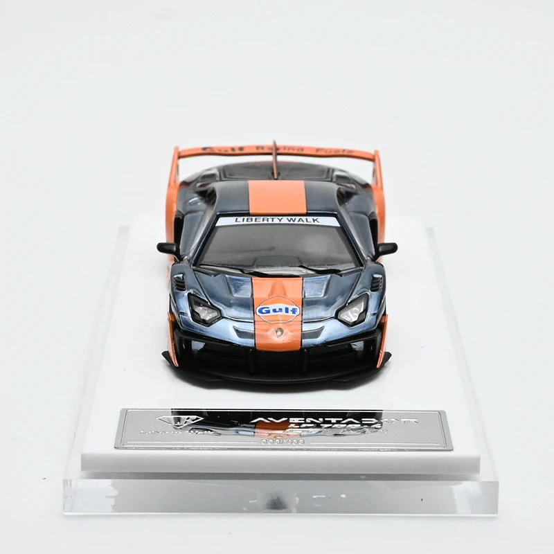 Step into the world of high-performance craftsmanship with this stunning 1/64 scale diecast model of the Lamborghini Aventador LP700-4 LBWK supercar. Crafted with meticulous attention to detail, this model combines metal, plastic, and rubber materials to offer an authentic and realistic appearance. Its sleek body features aerodynamic contours, intricate decals including “Gulf” logos, and vibrant racing stripes in a bold blue with orange accents. Perfect for avid collectors, hobbyists, and car enthusiasts, this model adds a touch of elegance and sportiness to any display. Its refined design captures the power and prestige of the actual supercar, making it an exceptional addition to your collection or a striking decorative piece for your home or office.
