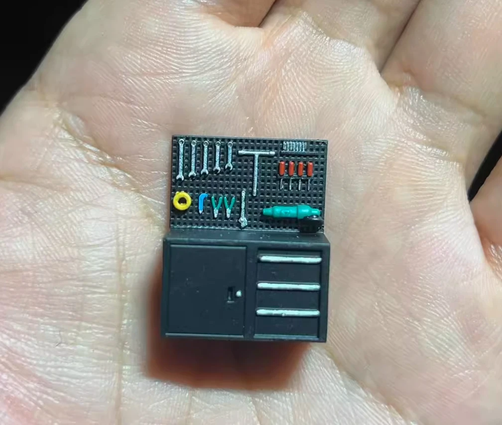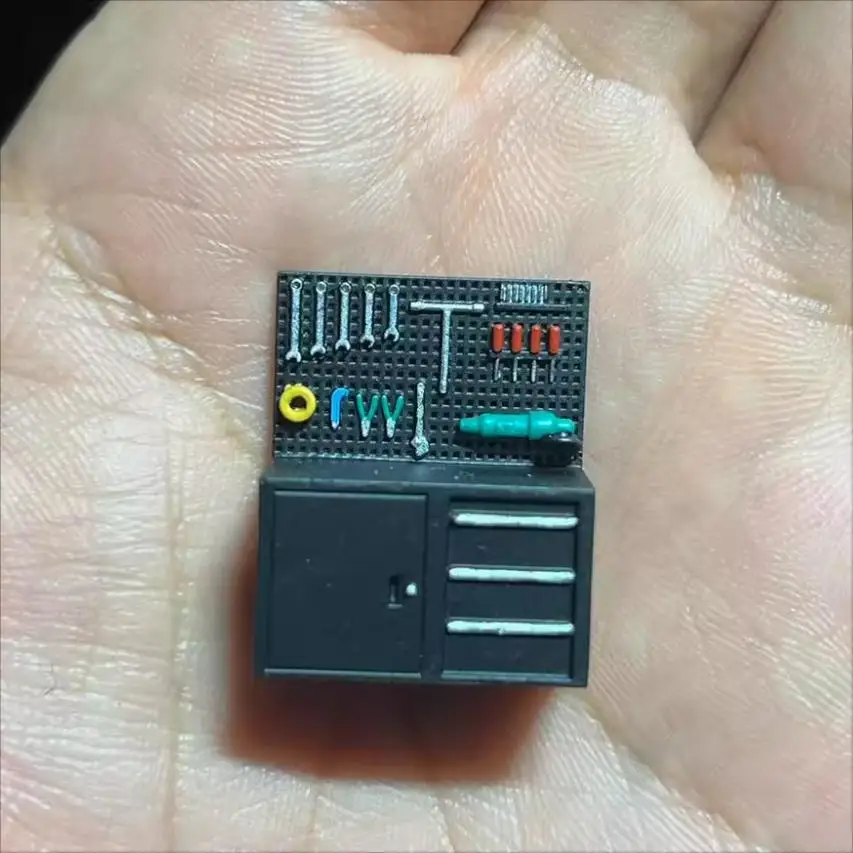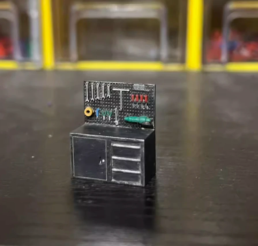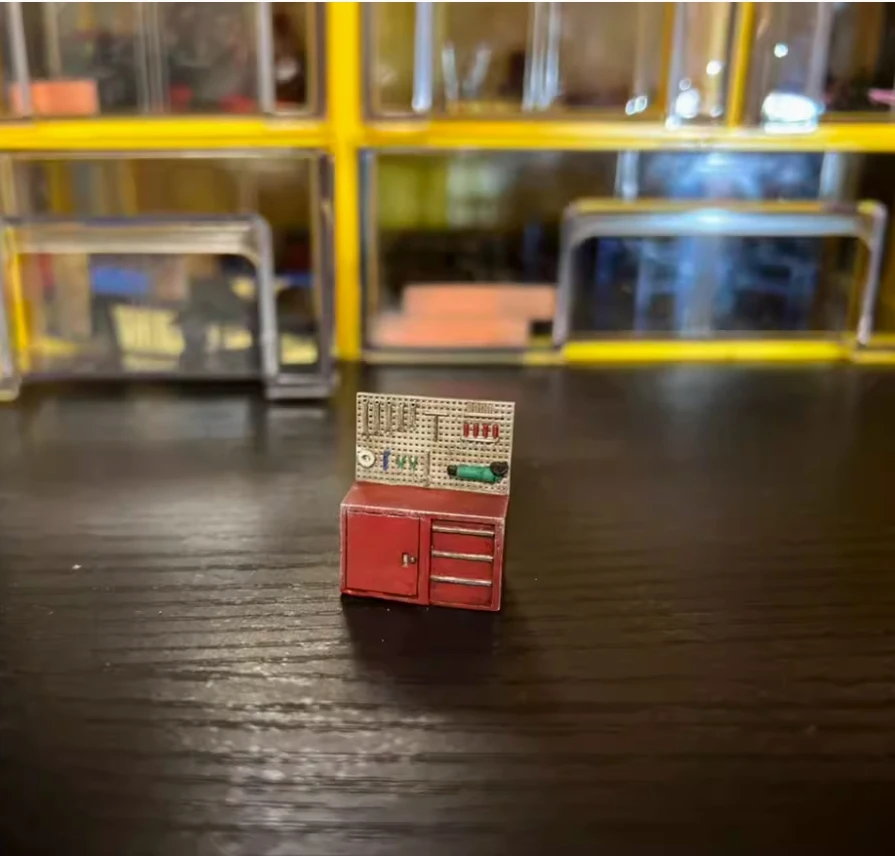 Transform your miniature garage scene with this stunning 1/64 scale model tool rack and cabinet set, meticulously crafted from eco-friendly resin. Designed for diorama enthusiasts and model creators, this set brings vibrant color and intricate details to life, perfect for enhancing your displays. The handcrafted elements, including hand-colored weathering effects, add a unique touch, making each piece a true work of art. These decorative accents create an engaging backdrop for any model scene, whether for display or macro photography. Add a burst of color and organization to your model garage today!