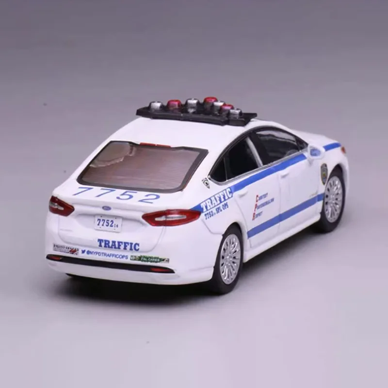 - This 1/64 scale diecast model showcases authentic police car design with alloy and plastic construction, mimicking real-world police vehicles through crisp lines and precise detailing.