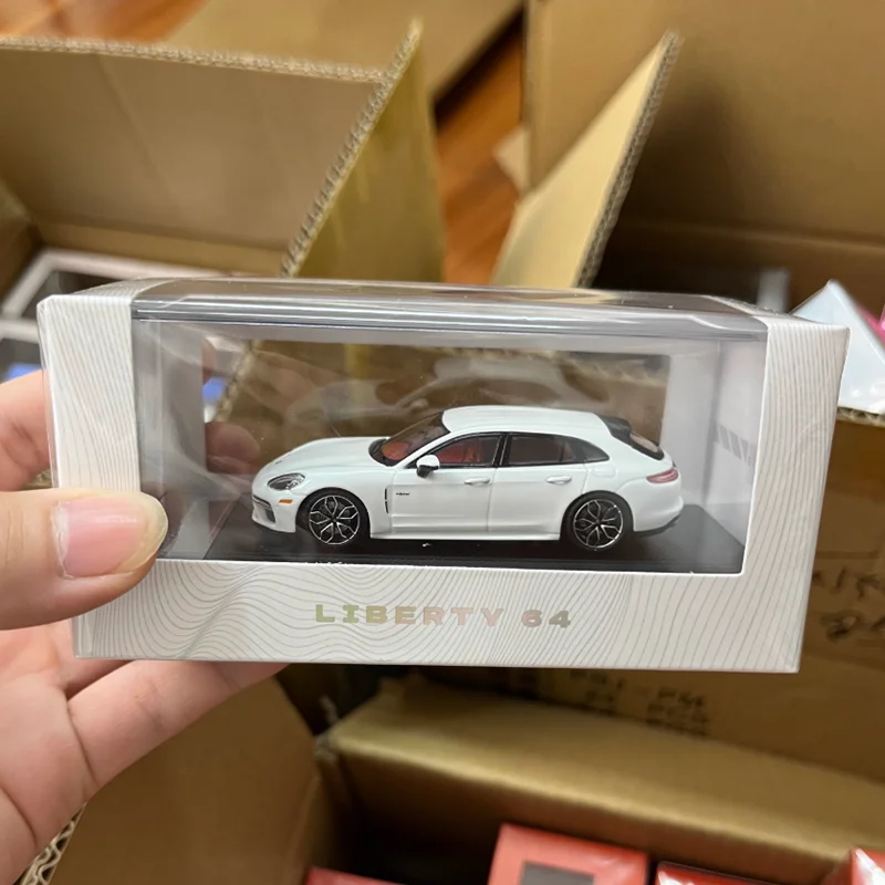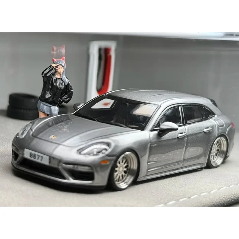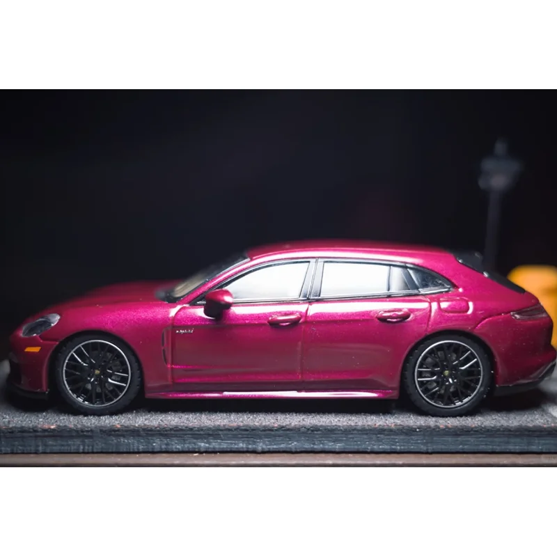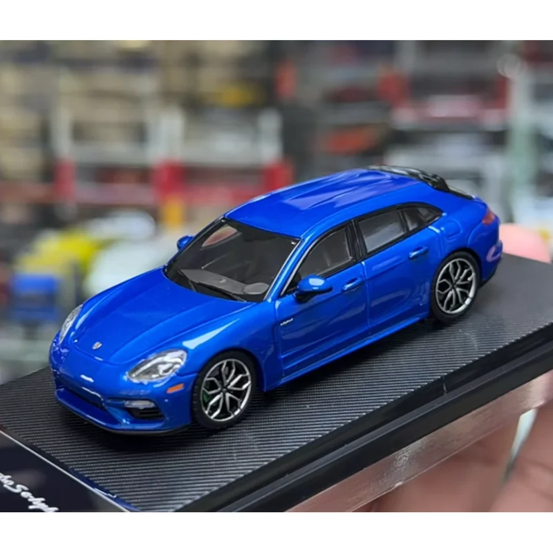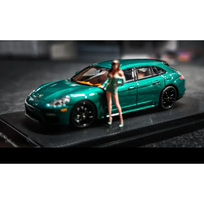 The 1/64 Scale Panamera Sport Turismo Turbo S Station Wagon Die-cast Alloy Car Model features a striking glossy green exterior complemented by a light tan or beige interior. This detailed model, measuring approximately 7 cm, is crafted from a combination of alloy and plastic, showcasing intricate features such as realistic headlights, taillights, and accurately designed wheels. Mounted on a textured black display base, it serves as a perfect decorative piece for collectors. Please note that the model is fragile, and any parts can be repaired with glue if necessary. Ideal for gifting, collecting, or as a decorative ornament, it is not suitable for children.