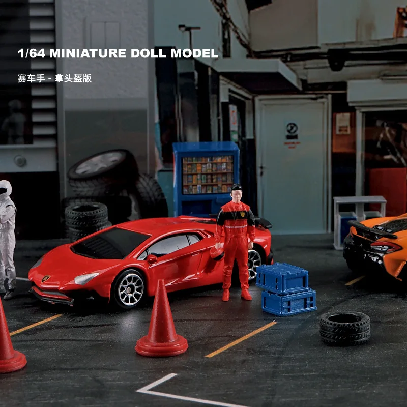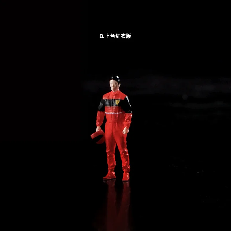 Experience the thrill of racing from a unique perspective with this 1/64 scale miniature figure of a racing driver. Standing approximately 2.6 cm tall, this exquisitely crafted resin model showcases a vibrant bright red racing suit highlighted with black accents, capturing the essence of speed and excitement. The driver, complete with a dynamic black helmet featuring a striking red stripe, embodies readiness and action. With its simplistic face and confident stance, this figure complements miniature scenes or proportional car models perfectly, making it ideal for display or macro photography enthusiasts. Elevate your collection with this stunning piece that not only enhances your display but inspires your passion for motorsports.